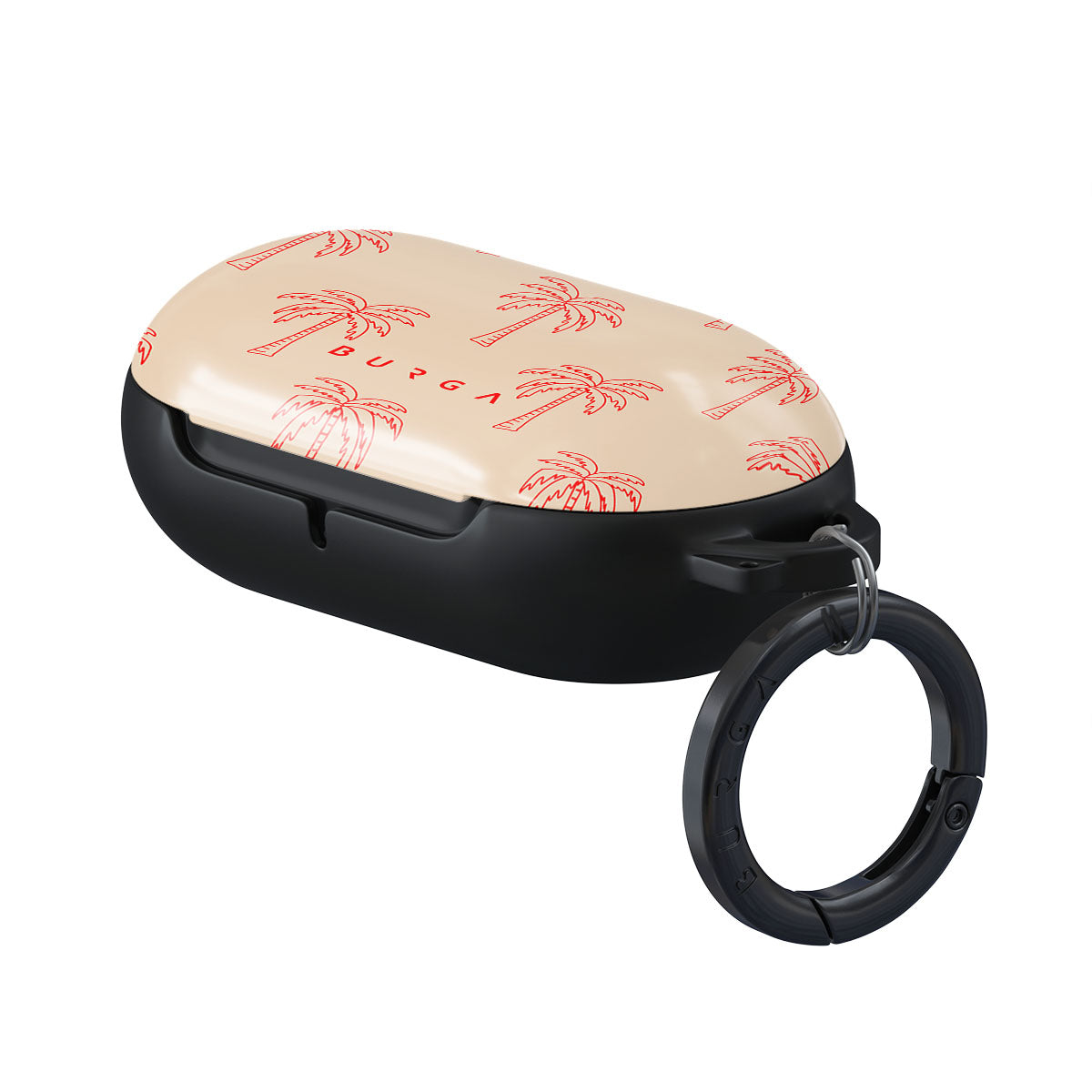 Retreat into the serene whispers of our Happy Hour design. Gentle pink palms sway on a soothing blush background, creating images of a tranquil paradise. This Samsung Galaxy Buds Plus case cover is perfect for dreamers and nature lovers who seek a daily escape into tranquility.