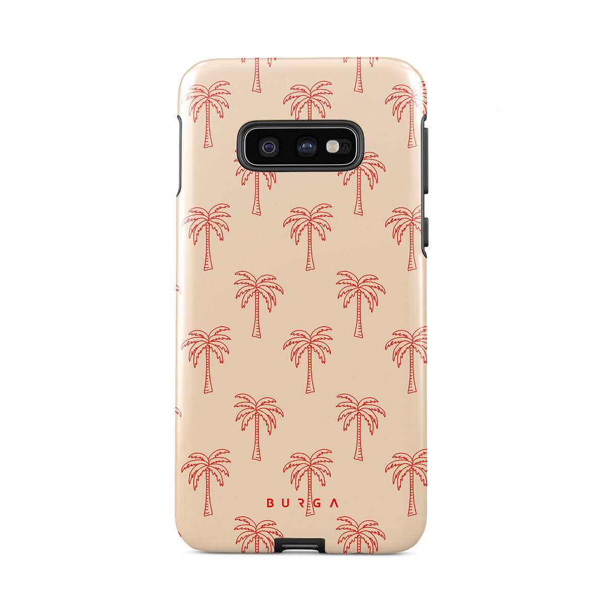 Retreat into the serene whispers of our Happy Hour design. Gentle pink palms sway on a soothing blush background, creating images of a tranquil paradise. This Samsung Galaxy S10E phone case is perfect for dreamers and nature lovers who seek a daily escape into tranquility.