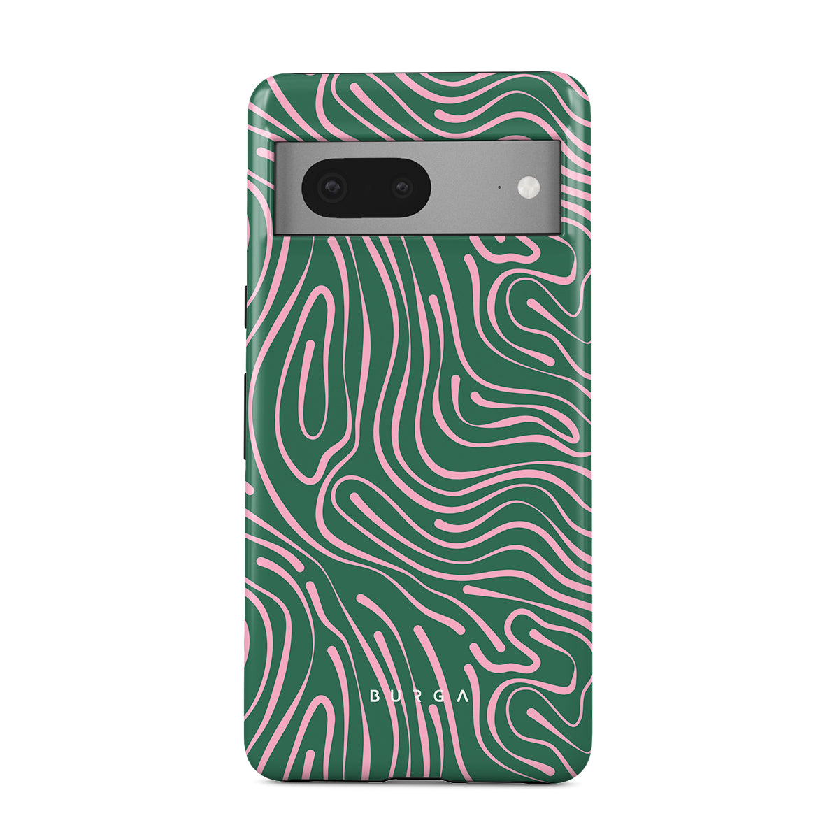 Fresh and mesmerizing, our Hawaiian Breeze Google Pixel 7a phone case design combines a pastel pink wavy pattern with a crisp green background creating a refreshing look. The abstract pattern will indeed become a star in your accessorizing game, while the phone case will keep your device protected at all times!