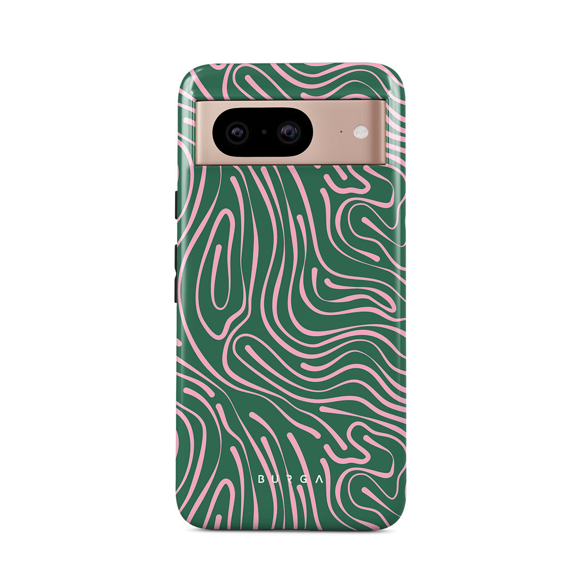 Fresh and mesmerizing, our Hawaiian Breeze Google Pixel 8 phone case design combines a pastel pink wavy pattern with a crisp green background creating a refreshing look. The abstract pattern will indeed become a star in your accessorizing game, while the phone case will keep your device protected at all times!