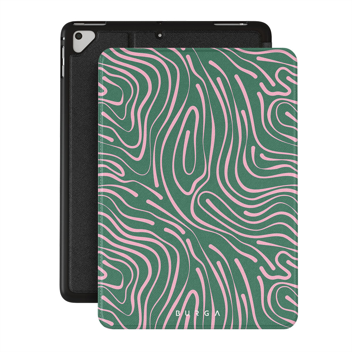 Fresh and mesmerizing, our Hawaiian Breeze iPad 9.7 (6th/5th Gen) folio case design combines a pastel pink wavy pattern with a crisp green background creating a refreshing look. The abstract pattern will indeed become a star in your accessorizing game, while the iPad case will keep your device protected at all times!