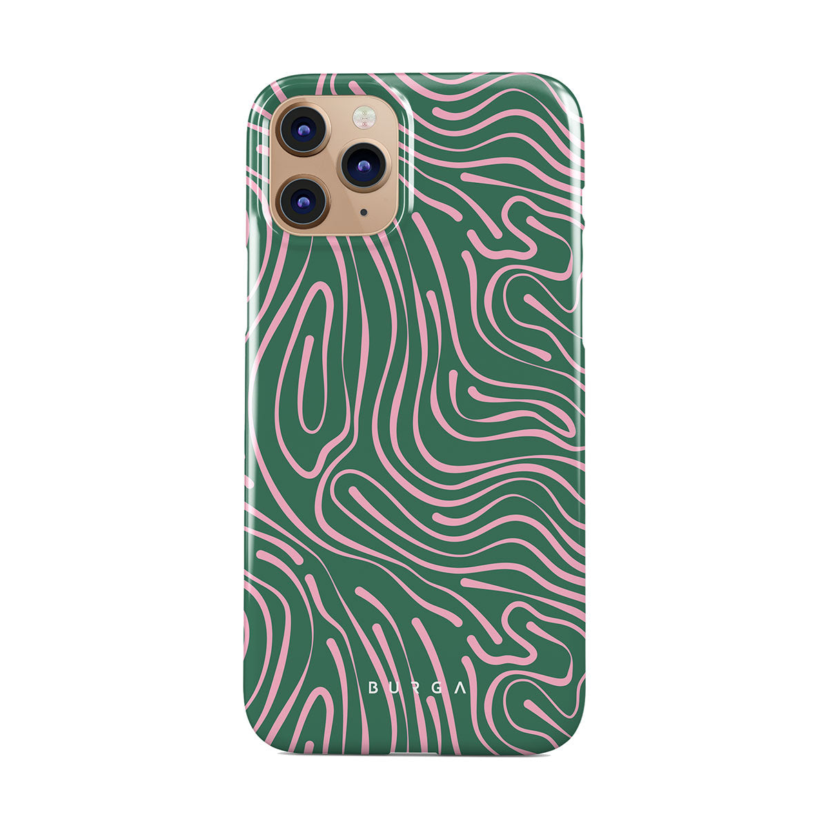 Fresh and mesmerizing, our Hawaiian Breeze iPhone 11 Pro Max phone case design combines a pastel pink wavy pattern with a crisp green background creating a refreshing look. The abstract pattern will indeed become a star in your accessorizing game, while the phone case will keep your device protected at all times!