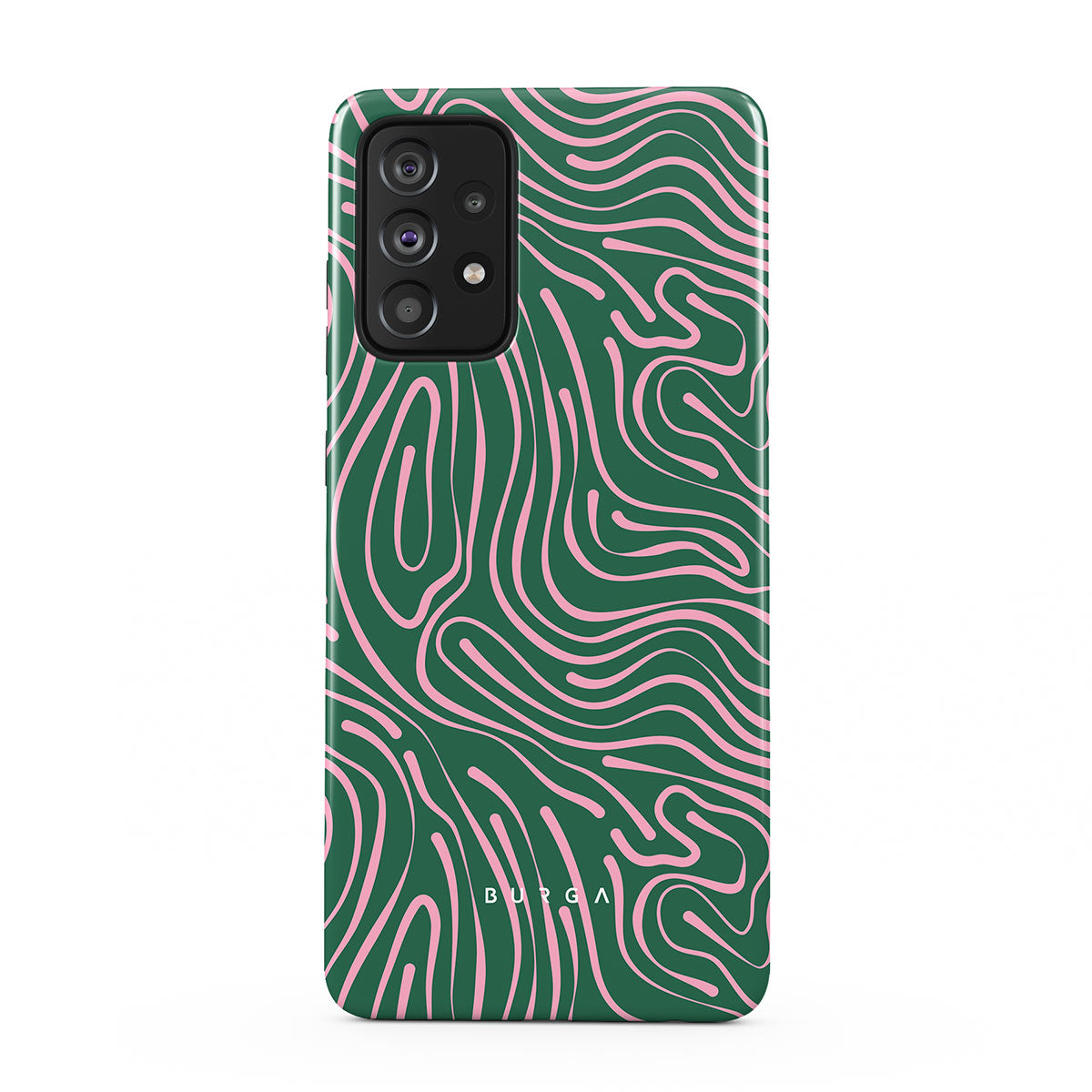 Fresh and mesmerizing, our Hawaiian Breeze Samsung Galaxy A52 / A52S 4G / 5G phone case design combines a pastel pink wavy pattern with a crisp green background creating a refreshing look. The abstract pattern will indeed become a star in your accessorizing game, while the phone case will keep your device protected at all times!