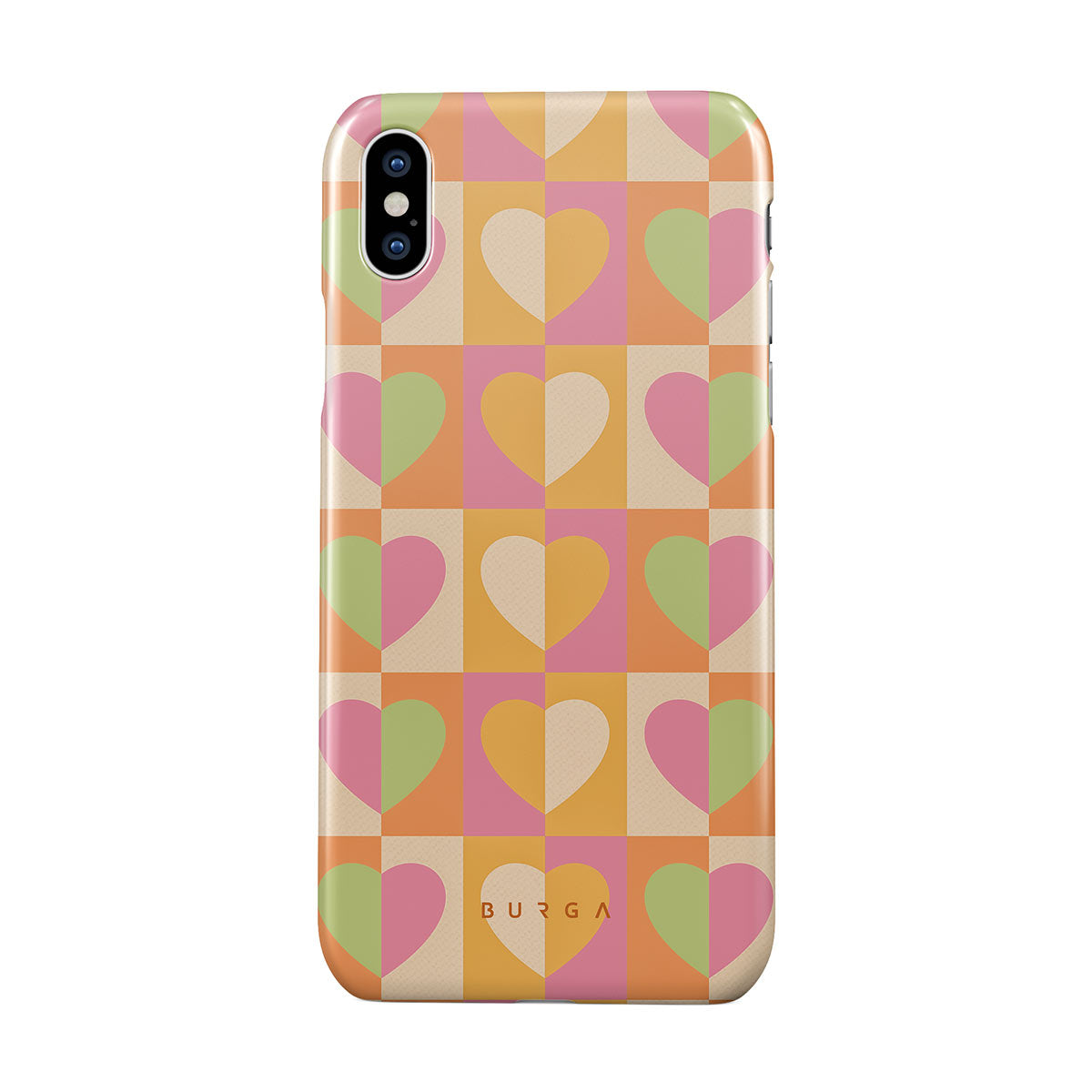 Beautifully geometrical and lovable Summer Love iPhone XS Max phone case combines a soft pastel color scheme with a playful square heart pattern. Adding a touch of love to your style was never easier! Keep your phone as safe as you keep your heart in a cheeky checkered protective phone case!