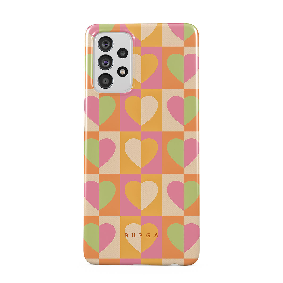 Beautifully geometrical and lovable Summer Love Samsung Galaxy A72 4G / 5G phone case combines a soft pastel color scheme with a playful square heart pattern. Adding a touch of love to your style was never easier! Keep your phone as safe as you keep your heart in a cheeky checkered protective phone case!