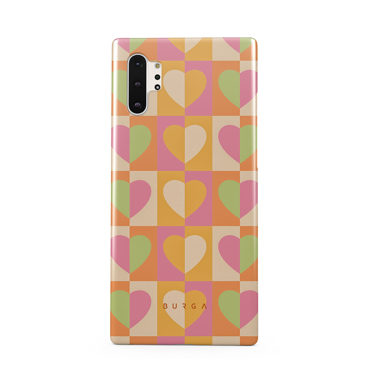 Beautifully geometrical and lovable Summer Love Samsung Galaxy Note 10 Plus phone case combines a soft pastel color scheme with a playful square heart pattern. Adding a touch of love to your style was never easier! Keep your phone as safe as you keep your heart in a cheeky checkered protective phone case!