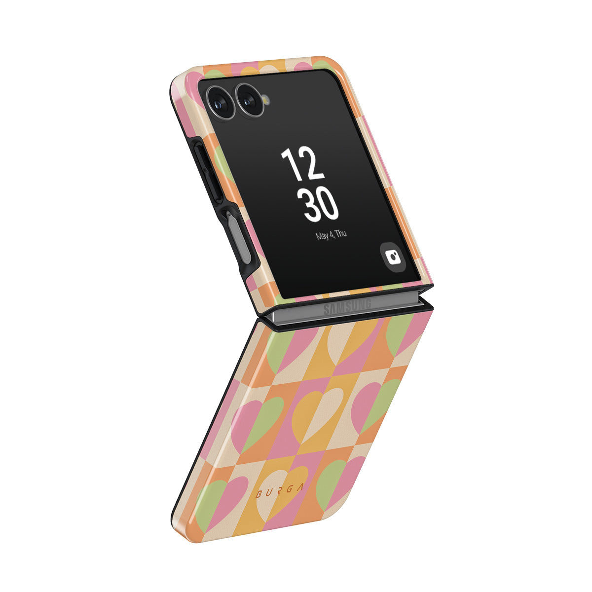 Beautifully geometrical and lovable Summer Love Samsung Galaxy Z Flip 7 phone case combines a soft pastel color scheme with a playful square heart pattern. Adding a touch of love to your style was never easier! Keep your phone as safe as you keep your heart in a cheeky checkered protective phone case!
