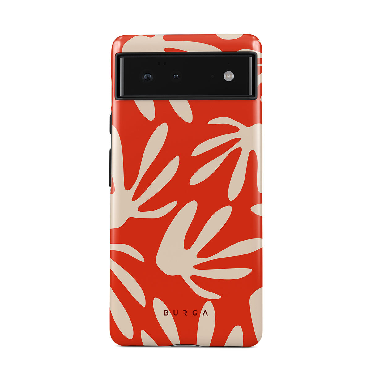 Unfolding the untamed allure of a summer sunset, this design boasts a vivid red background that sets your spirit of adventure aflame. Sprinkled across this fierce backdrop, lines of radiance dance playfully. Experience the warmth of passion and the sparkle of joy in the palm of your hand with our Heatwave Google Pixel 6 phone case.