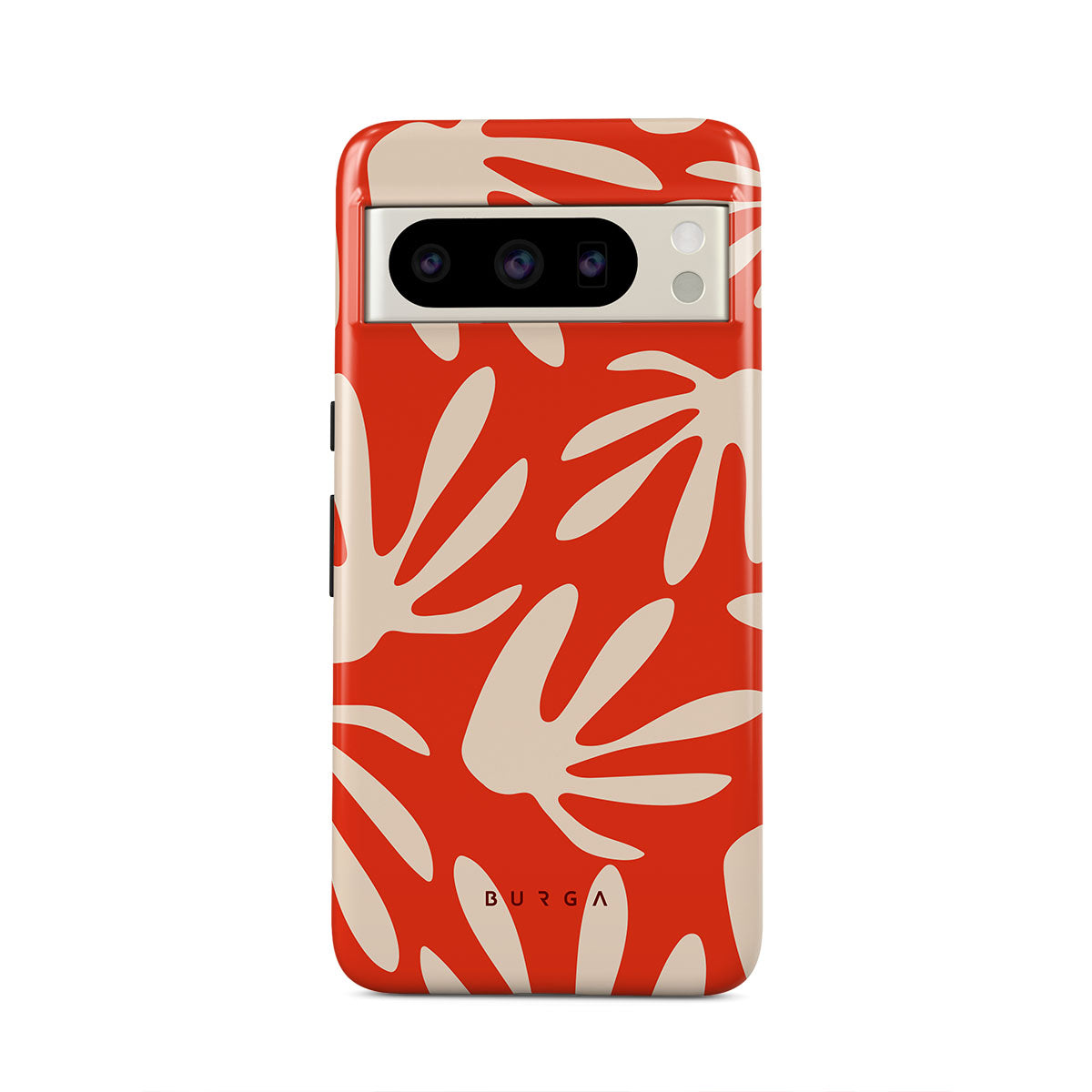 Unfolding the untamed allure of a summer sunset, this design boasts a vivid red background that sets your spirit of adventure aflame. Sprinkled across this fierce backdrop, lines of radiance dance playfully. Experience the warmth of passion and the sparkle of joy in the palm of your hand with our Heatwave Google Pixel 8 Pro phone case.