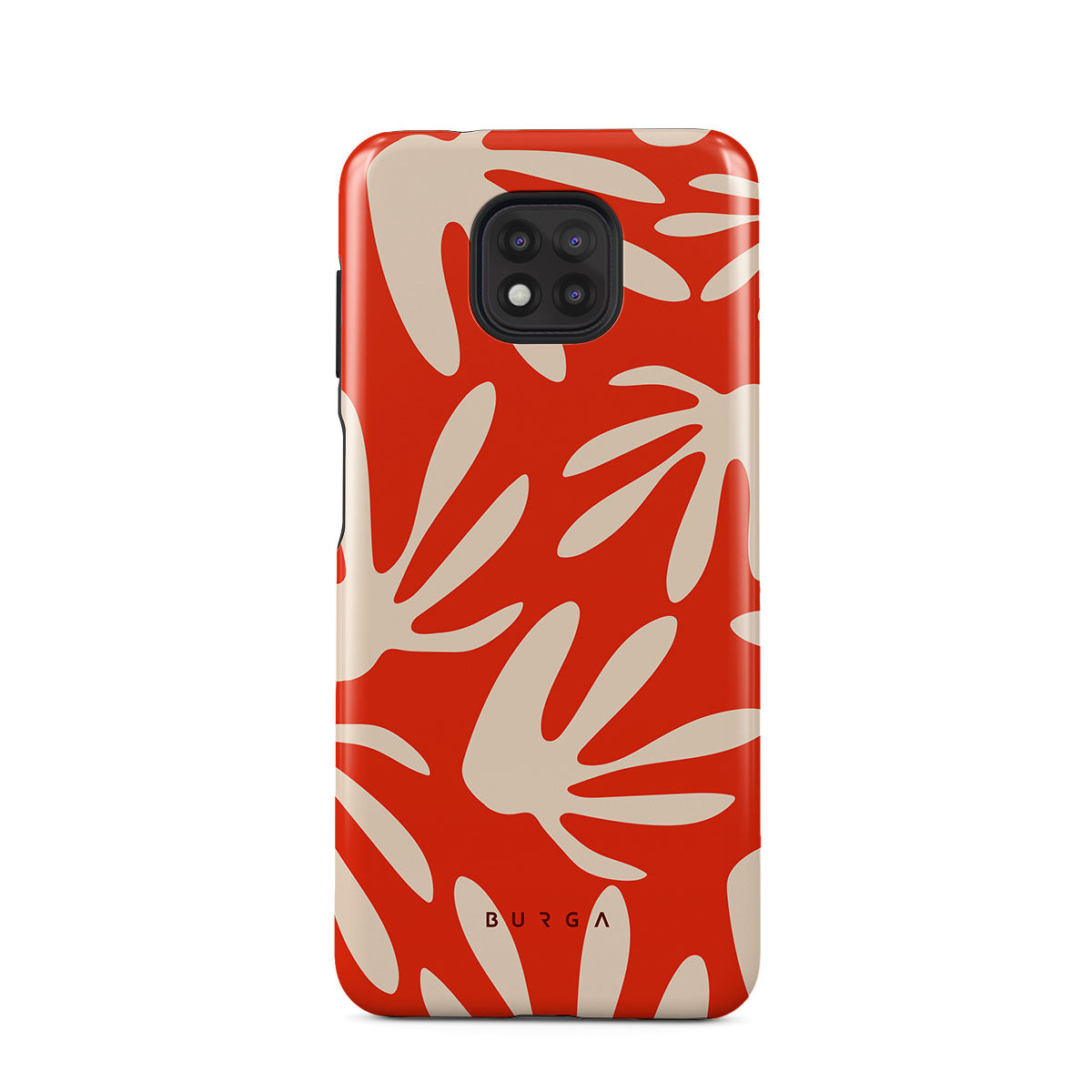 Unfolding the untamed allure of a summer sunset, this design boasts a vivid red background that sets your spirit of adventure aflame. Sprinkled across this fierce backdrop, lines of radiance dance playfully. Experience the warmth of passion and the sparkle of joy in the palm of your hand with our Heatwave Motorola Moto G Power 2021 phone case.