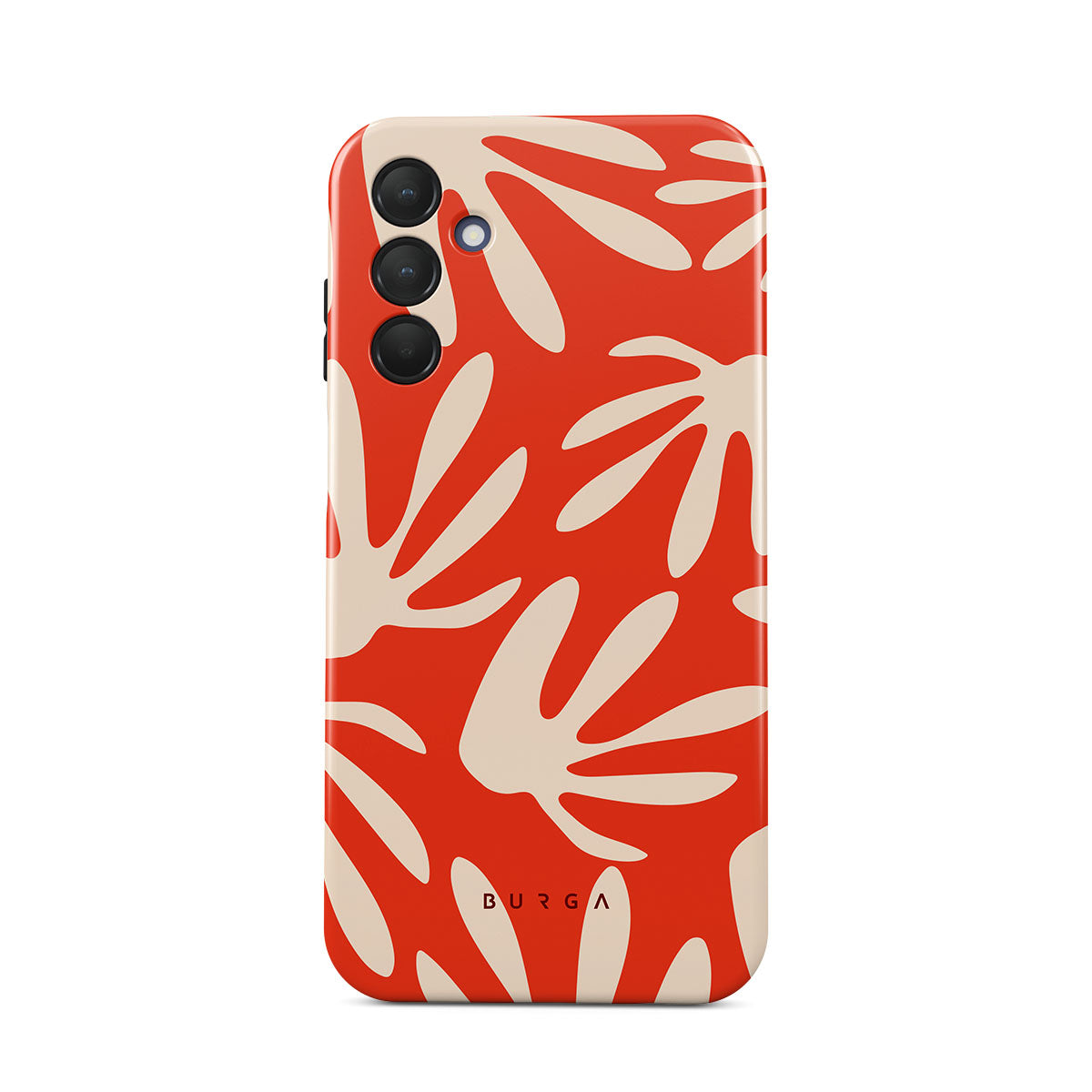 Unfolding the untamed allure of a summer sunset, this design boasts a vivid red background that sets your spirit of adventure aflame. Sprinkled across this fierce backdrop, lines of radiance dance playfully. Experience the warmth of passion and the sparkle of joy in the palm of your hand with our Heatwave Samsung Galaxy A15 4G / 5G phone case.