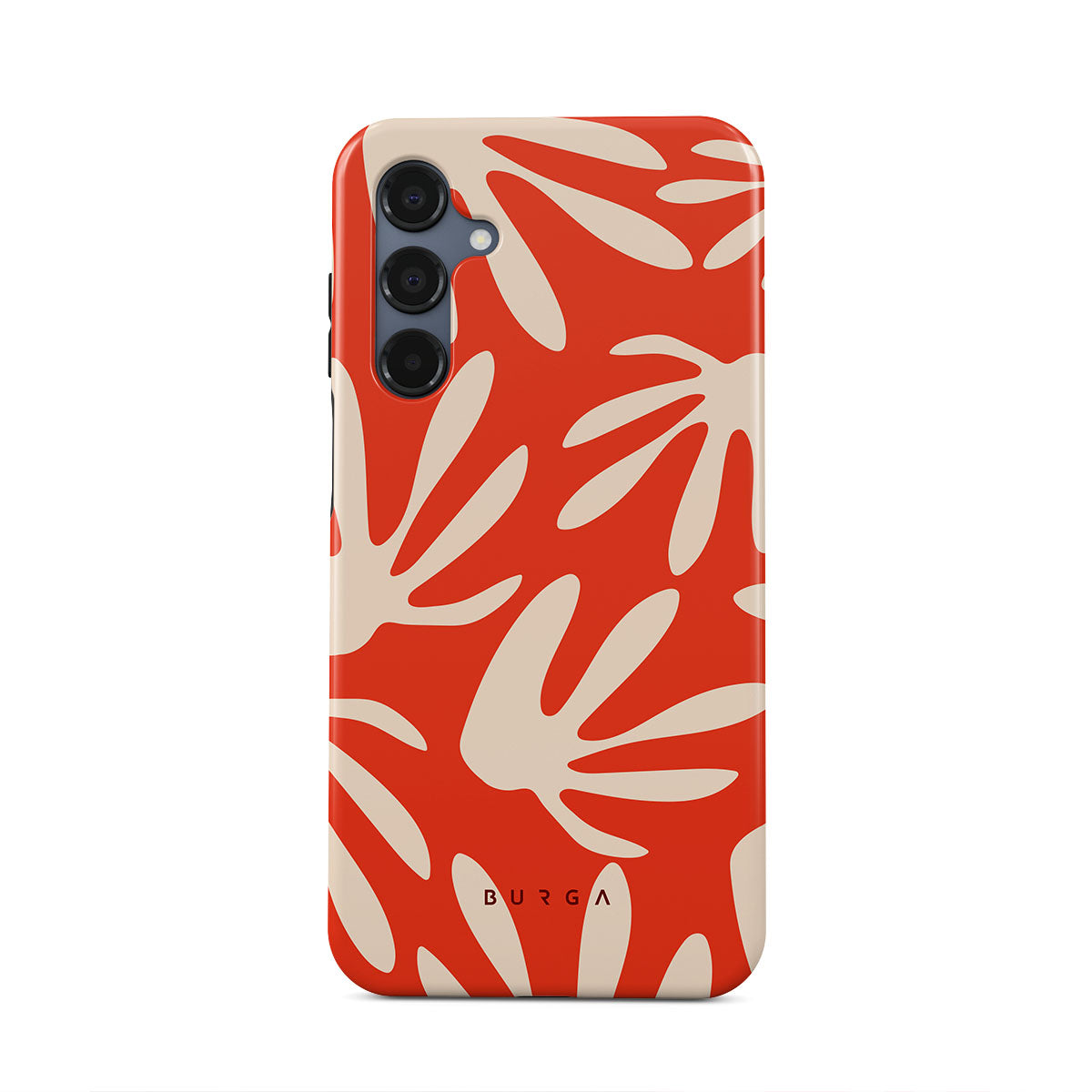 Unfolding the untamed allure of a summer sunset, this design boasts a vivid red background that sets your spirit of adventure aflame. Sprinkled across this fierce backdrop, lines of radiance dance playfully. Experience the warmth of passion and the sparkle of joy in the palm of your hand with our Heatwave Samsung Galaxy A16 phone case.