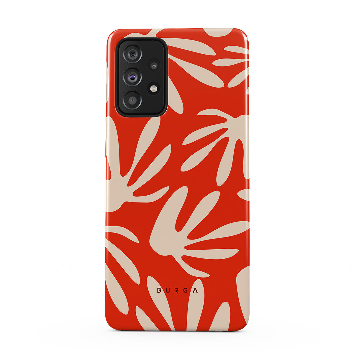 Unfolding the untamed allure of a summer sunset, this design boasts a vivid red background that sets your spirit of adventure aflame. Sprinkled across this fierce backdrop, lines of radiance dance playfully. Experience the warmth of passion and the sparkle of joy in the palm of your hand with our Heatwave Samsung Galaxy A52 / A52S 4G / 5G phone case.