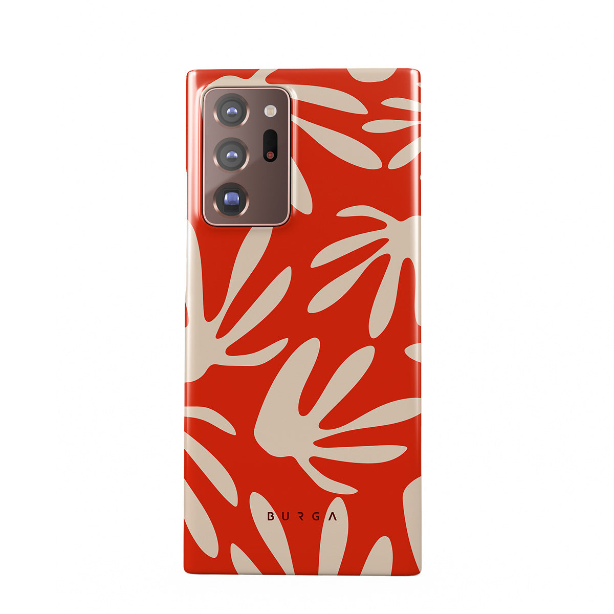 Unfolding the untamed allure of a summer sunset, this design boasts a vivid red background that sets your spirit of adventure aflame. Sprinkled across this fierce backdrop, lines of radiance dance playfully. Experience the warmth of passion and the sparkle of joy in the palm of your hand with our Heatwave Samsung Galaxy Note 20 Ultra 4G / 5G phone case.