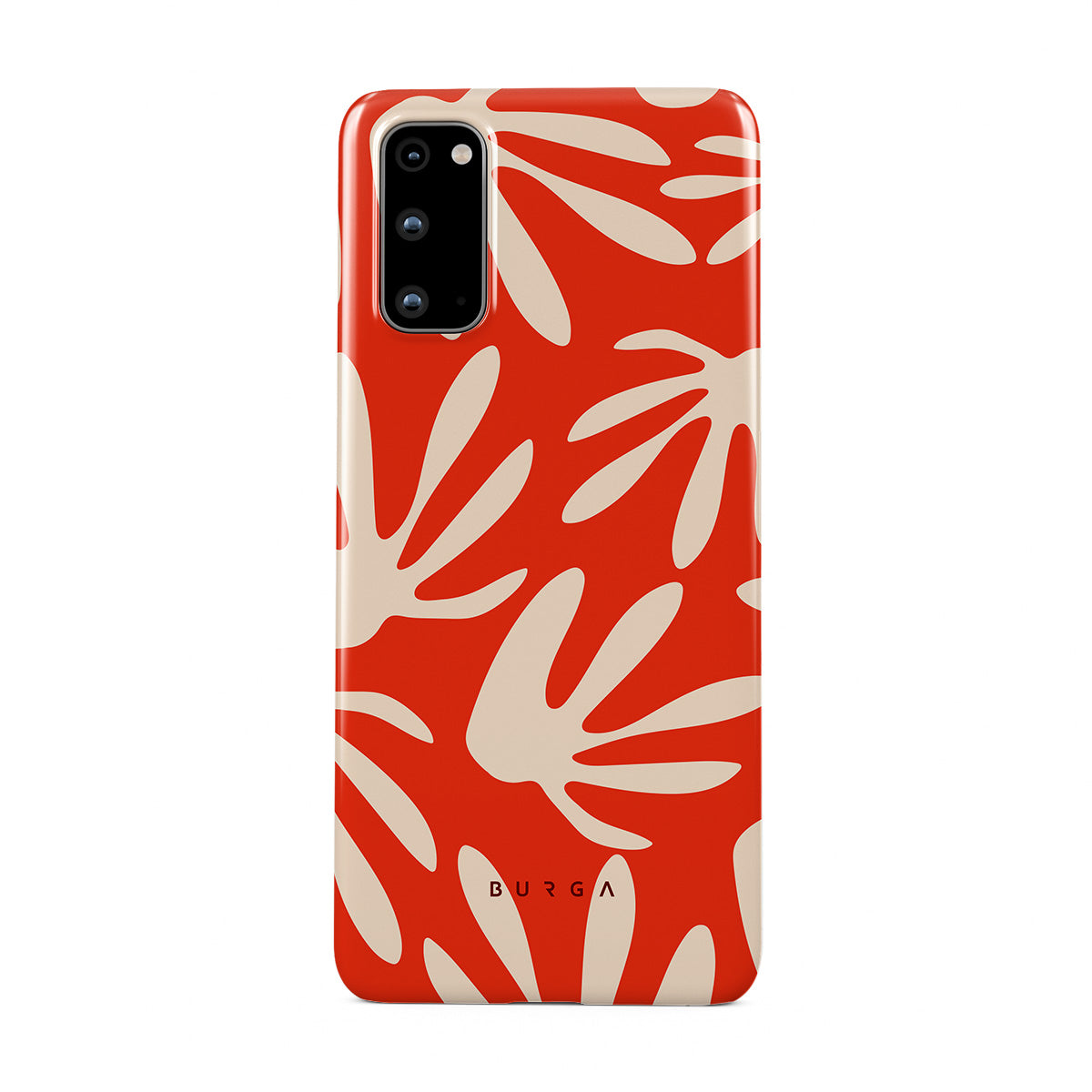 Unfolding the untamed allure of a summer sunset, this design boasts a vivid red background that sets your spirit of adventure aflame. Sprinkled across this fierce backdrop, lines of radiance dance playfully. Experience the warmth of passion and the sparkle of joy in the palm of your hand with our Heatwave Samsung Galaxy S20 4G / 5G phone case.
