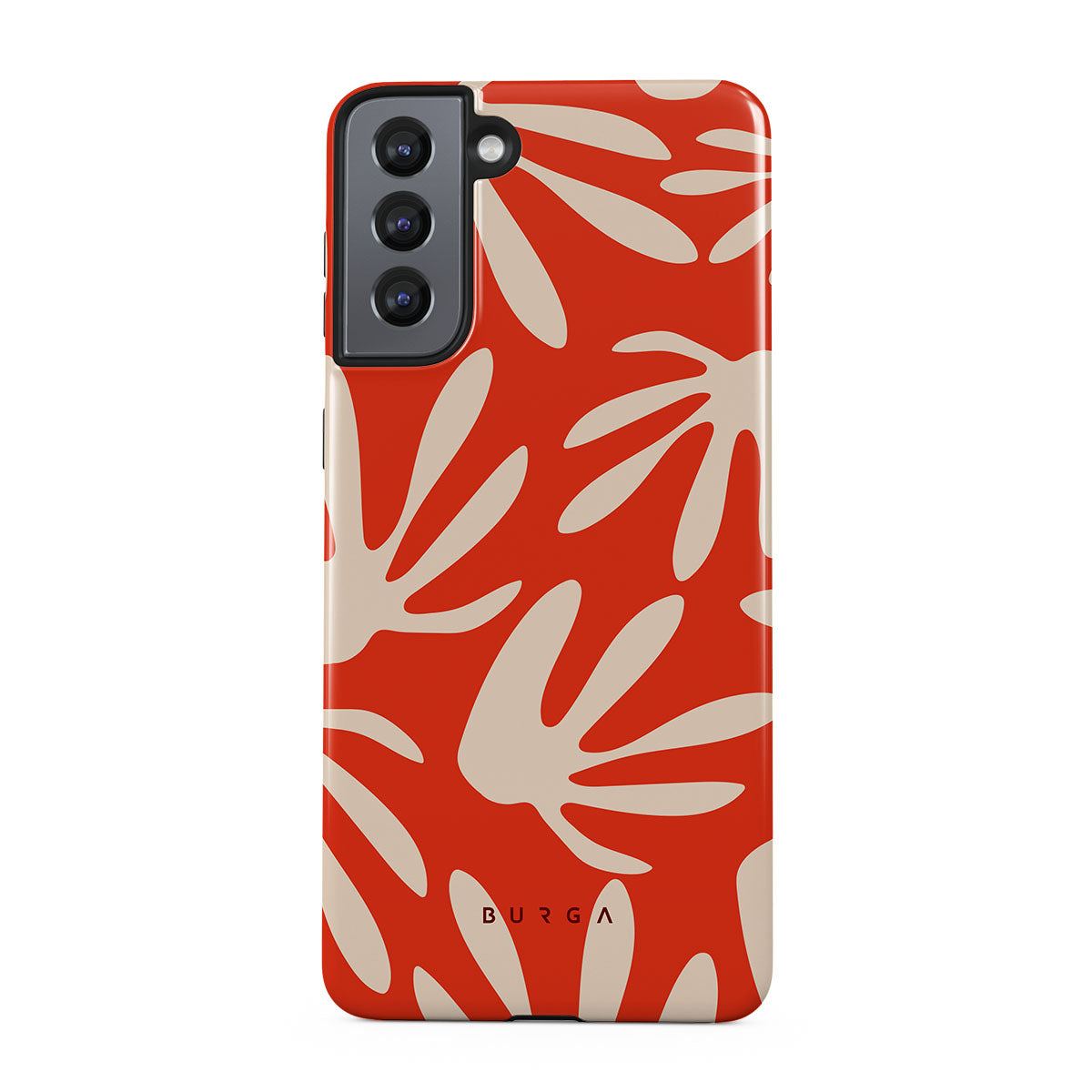 Unfolding the untamed allure of a summer sunset, this design boasts a vivid red background that sets your spirit of adventure aflame. Sprinkled across this fierce backdrop, lines of radiance dance playfully. Experience the warmth of passion and the sparkle of joy in the palm of your hand with our Heatwave Samsung Galaxy S21 phone case.