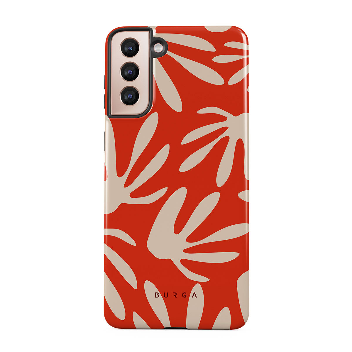 Unfolding the untamed allure of a summer sunset, this design boasts a vivid red background that sets your spirit of adventure aflame. Sprinkled across this fierce backdrop, lines of radiance dance playfully. Experience the warmth of passion and the sparkle of joy in the palm of your hand with our Heatwave Samsung Galaxy S21 Plus phone case.