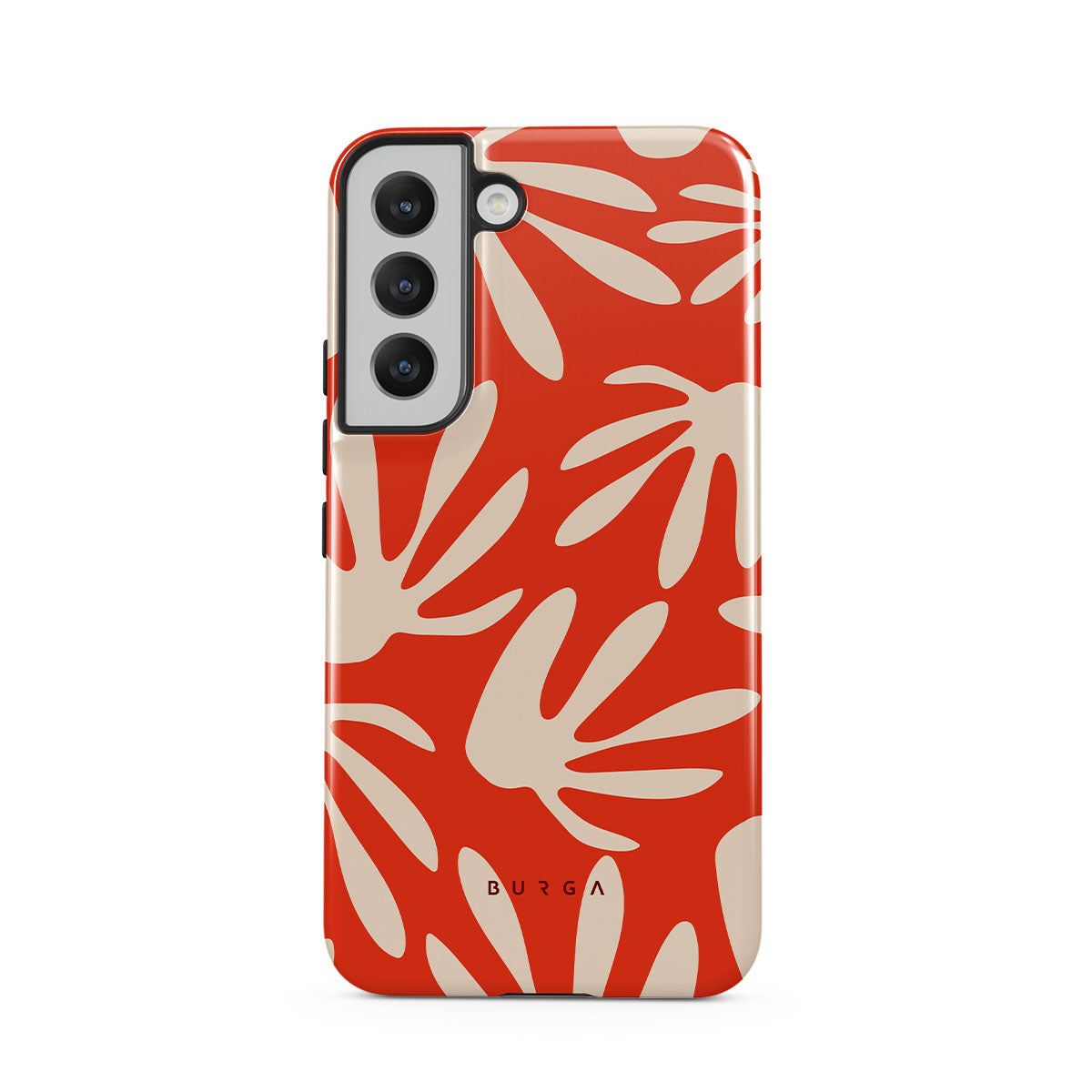 Unfolding the untamed allure of a summer sunset, this design boasts a vivid red background that sets your spirit of adventure aflame. Sprinkled across this fierce backdrop, lines of radiance dance playfully. Experience the warmth of passion and the sparkle of joy in the palm of your hand with our Heatwave Samsung Galaxy S22 phone case.