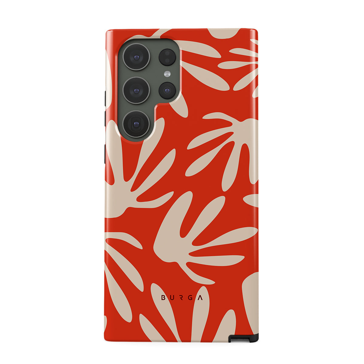 Unfolding the untamed allure of a summer sunset, this design boasts a vivid red background that sets your spirit of adventure aflame. Sprinkled across this fierce backdrop, lines of radiance dance playfully. Experience the warmth of passion and the sparkle of joy in the palm of your hand with our Heatwave Samsung Galaxy S23 Ultra phone case.