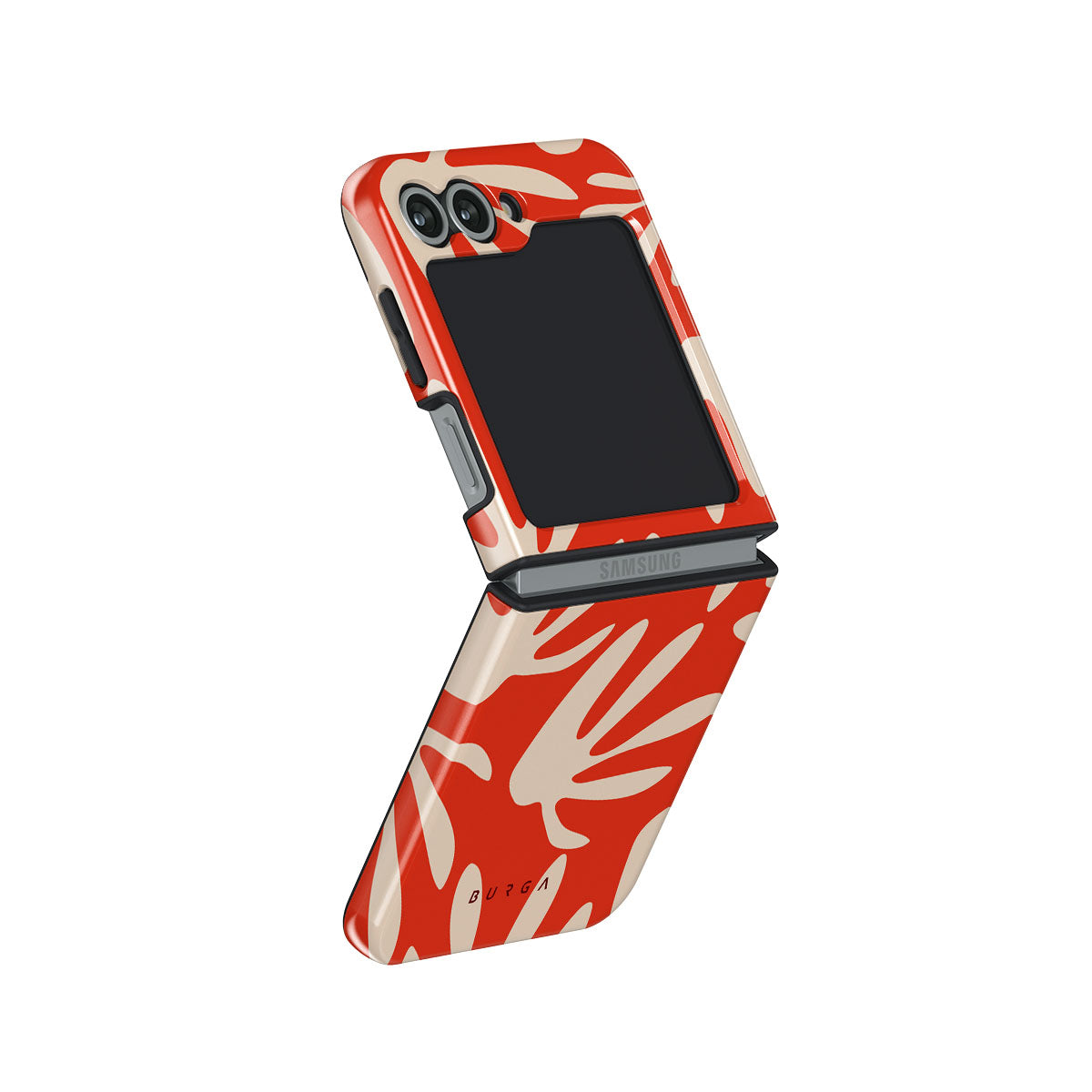 Unfolding the untamed allure of a summer sunset, this design boasts a vivid red background that sets your spirit of adventure aflame. Sprinkled across this fierce backdrop, lines of radiance dance playfully. Experience the warmth of passion and the sparkle of joy in the palm of your hand with our Heatwave Samsung Galaxy Z Flip 6 phone case.