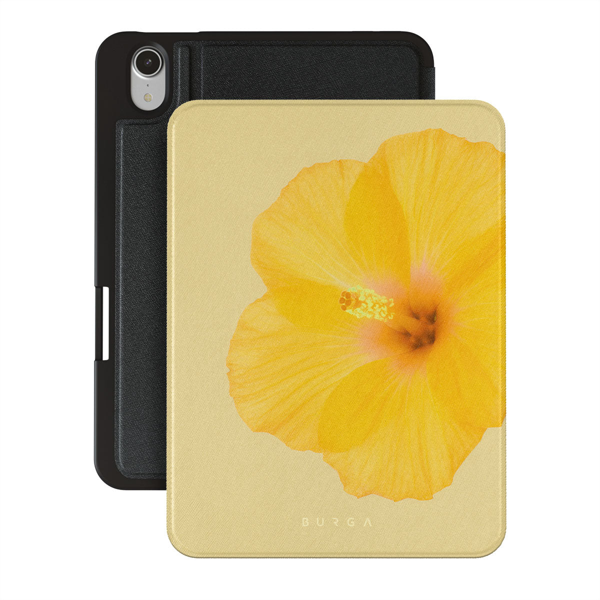 Our Hibiscus iPad Mini 8.3 (A17 Pro/6th Gen) 2021 folio case features a striking design with a large, vibrant yellow hibiscus flower on a matching yellow background. This tropical flower pattern exudes a sense of warmth and exotic beauty, perfect for those who love nature-inspired and floral aesthetics.