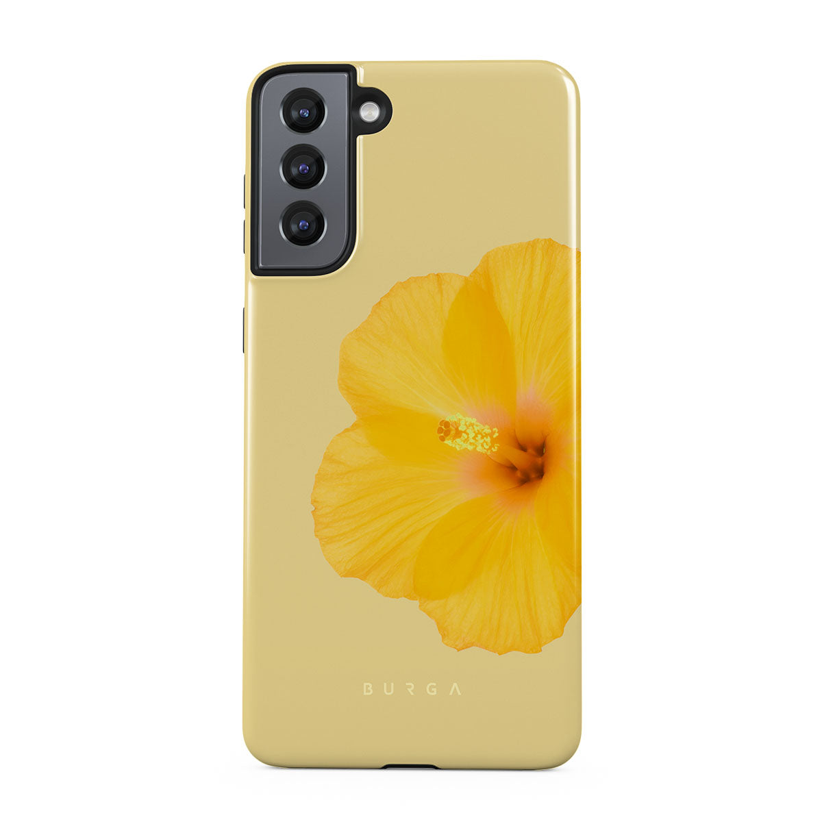 Our bright yellow Samsung Galaxy S21 phone case features bold, beautiful flowers that evoke a sense of nostalgia and happiness. This cheerful floral design captures the essence of joyful moments, making your device a reminder of sunny memories. Perfect for brightening up your day.