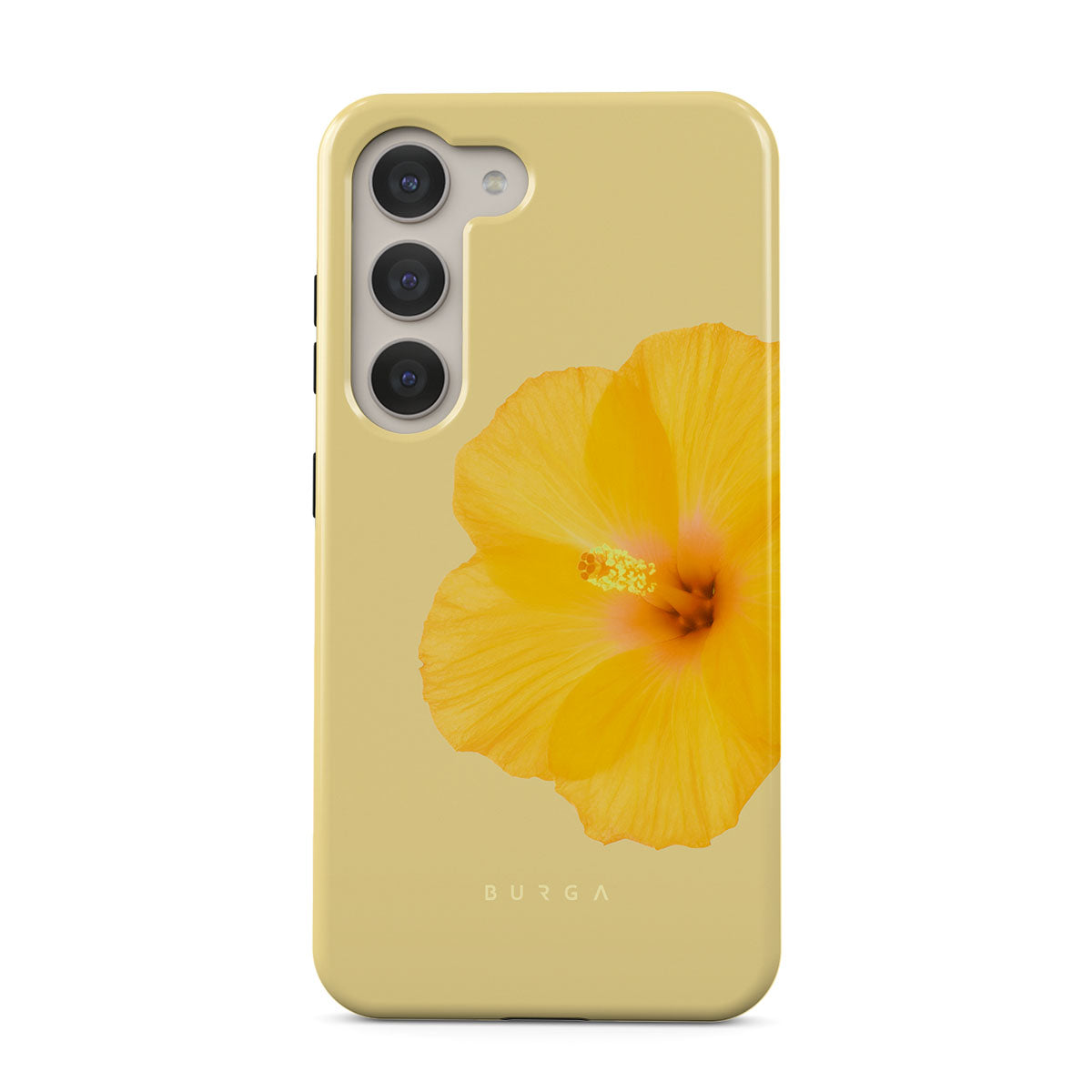 Our bright yellow Samsung Galaxy S23 phone case features bold, beautiful flowers that evoke a sense of nostalgia and happiness. This cheerful floral design captures the essence of joyful moments, making your device a reminder of sunny memories. Perfect for brightening up your day.