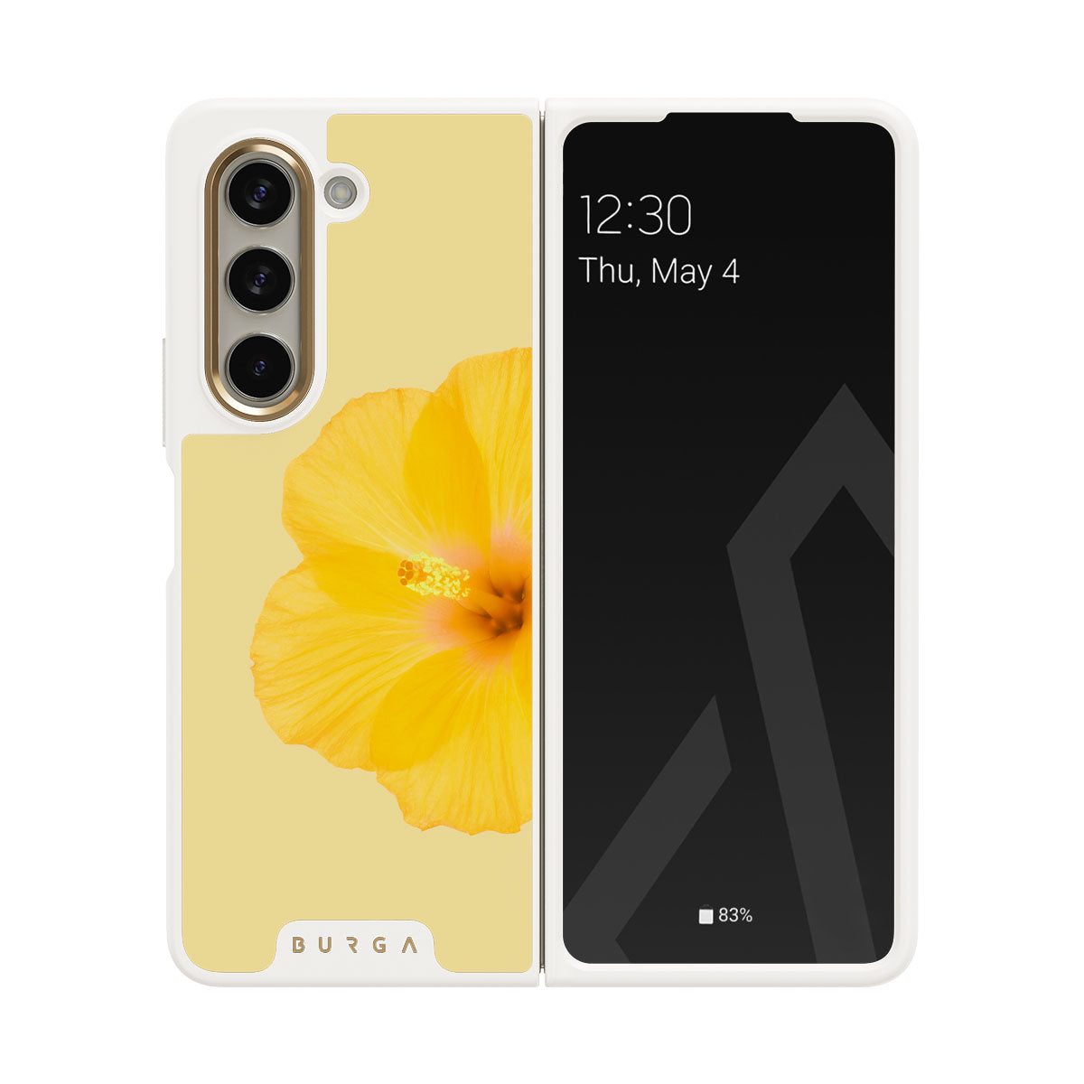 Our bright yellow Samsung Galaxy Z Fold 5 phone case features bold, beautiful flowers that evoke a sense of nostalgia and happiness. This cheerful floral design captures the essence of joyful moments, making your device a reminder of sunny memories. Perfect for brightening up your day.