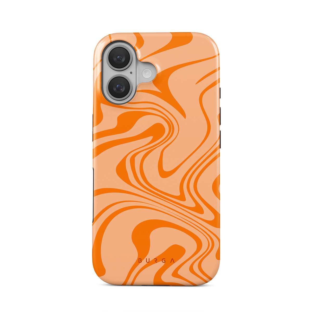 Add some retro vibes to your modern device with our High Vibrations iPhone 16 phone case. Bright orange allows the darker color swirls to release all that groove energy! This cheerful design is a true showstopper.