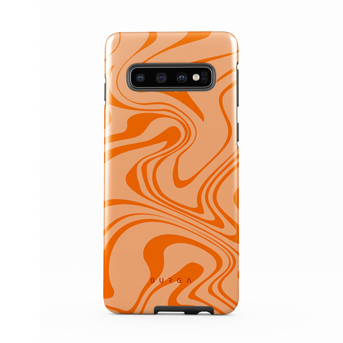 Add some retro vibes to your modern device with our High Vibrations Samsung Galaxy S10 4G phone case. Bright orange allows the darker color swirls to release all that groove energy! This cheerful design is a true showstopper.