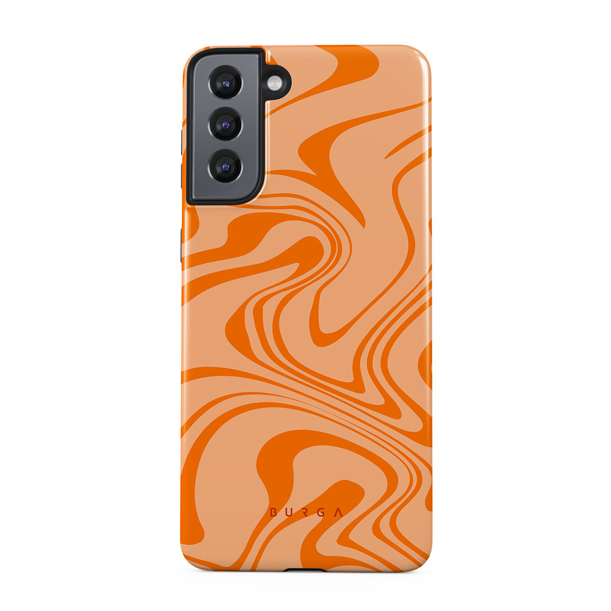 Add some retro vibes to your modern device with our High Vibrations Samsung Galaxy S21 phone case. Bright orange allows the darker color swirls to release all that groove energy! This cheerful design is a true showstopper.