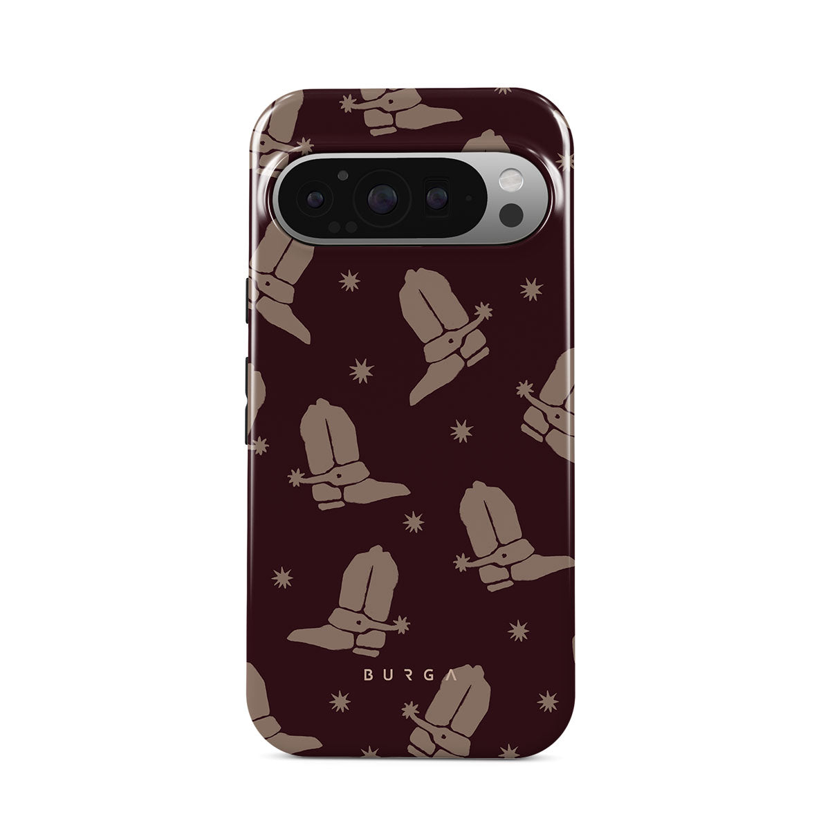 Say Howdy to this charming Google Pixel 9 Pro XL phone case design. Cowboy boots and stars dance across a deep brown background, celebrating the essence of western life. Perfect for those who embrace their free spirit.