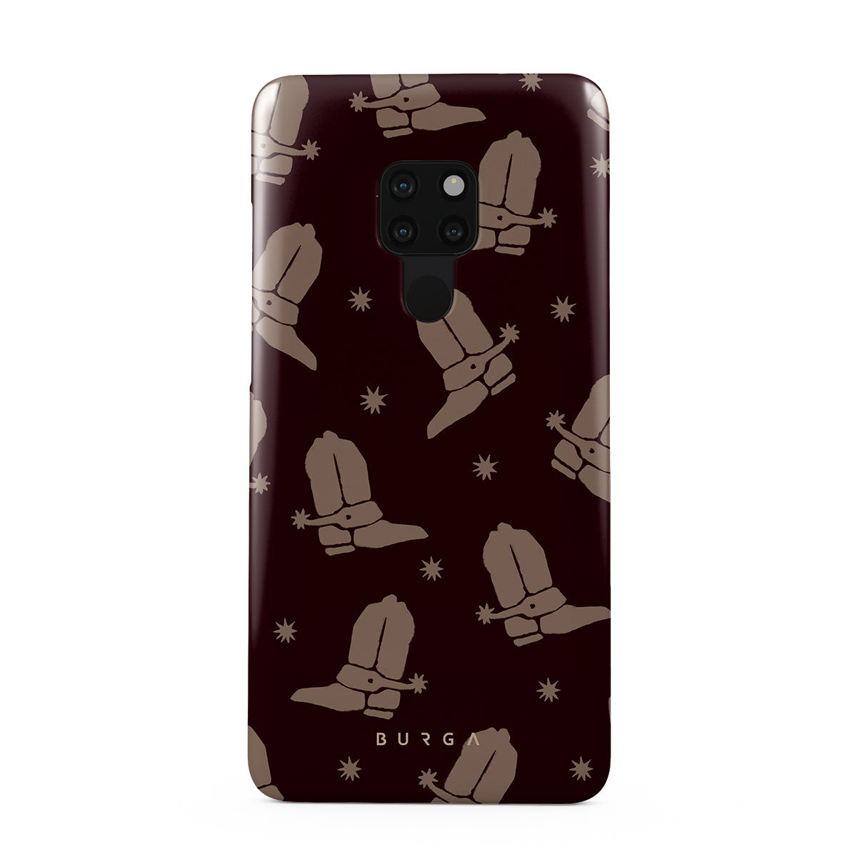 Say Howdy to this charming Huawei Mate 20 phone case design. Cowboy boots and stars dance across a deep brown background, celebrating the essence of western life. Perfect for those who embrace their free spirit.