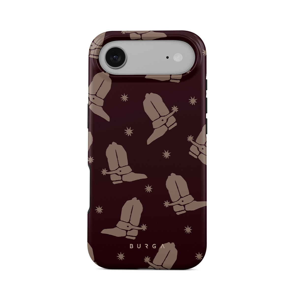 Say Howdy to this charming iPhone Air phone case design. Cowboy boots and stars dance across a deep brown background, celebrating the essence of western life. Perfect for those who embrace their free spirit.