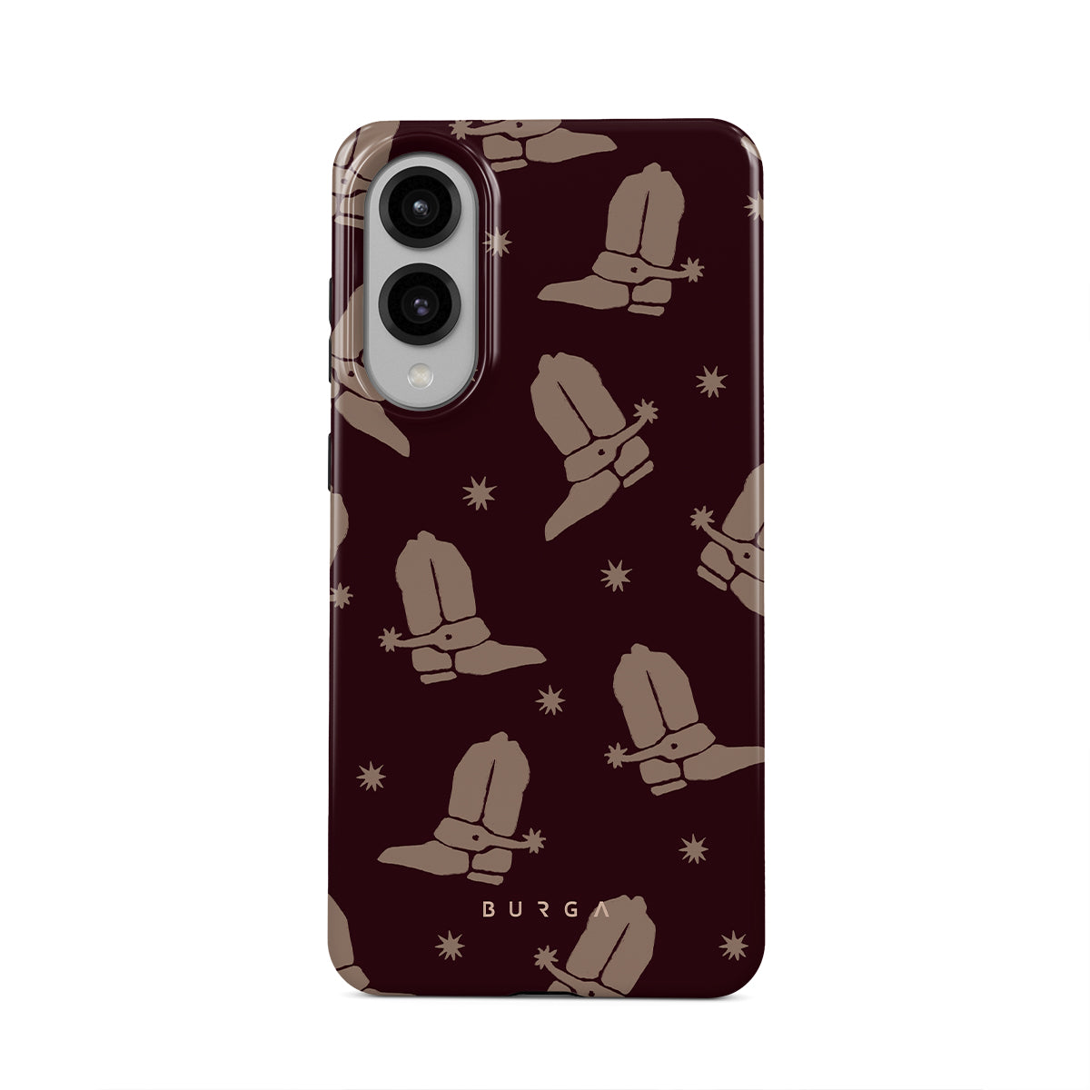 Say Howdy to this charming Samsung Galaxy S25 Edge phone case design. Cowboy boots and stars dance across a deep brown background, celebrating the essence of western life. Perfect for those who embrace their free spirit.