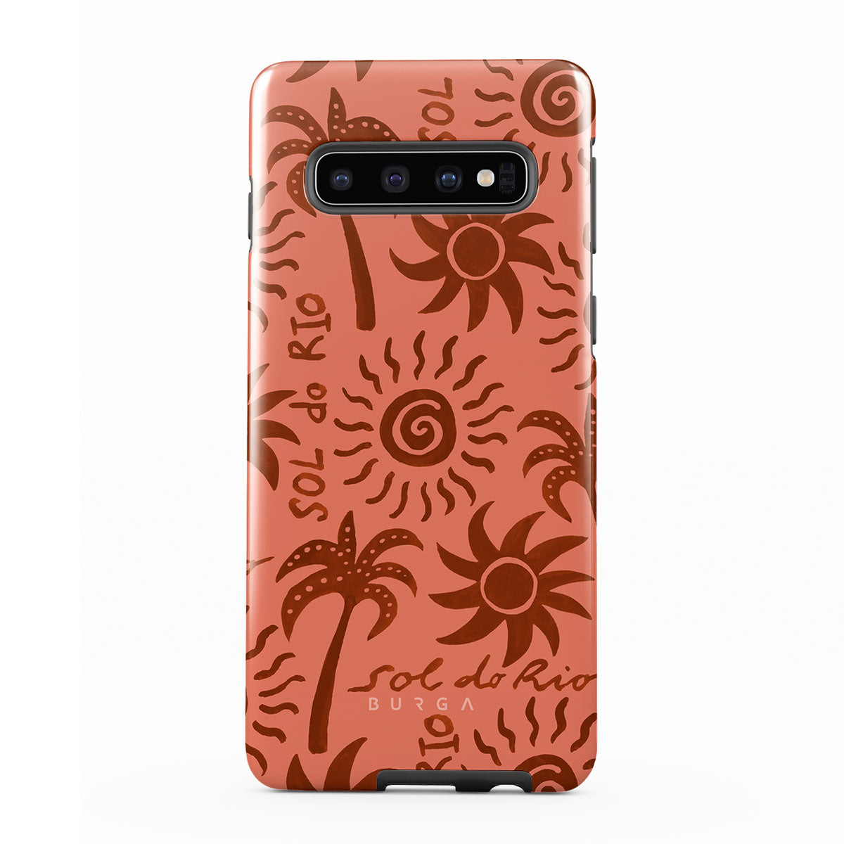 Drawn in the sand with someone’s leftover popsicle stick. Scribbly symbols and a sunburned palette that whisper “let’s not go back yet.” That's the Ipanema Samsung Galaxy S10 phone case design.