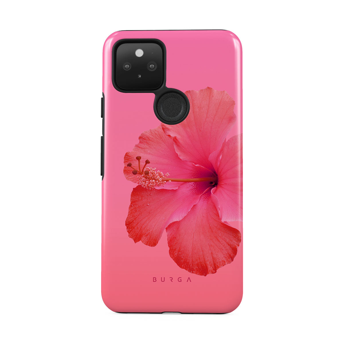 Our Island Girl Google Pixel 5 phone case design bursts with the fiery red of a hibiscus in full bloom against a dreamy pink backdrop. Perfect for those who embody the spirit of a sun-kissed island retreat.