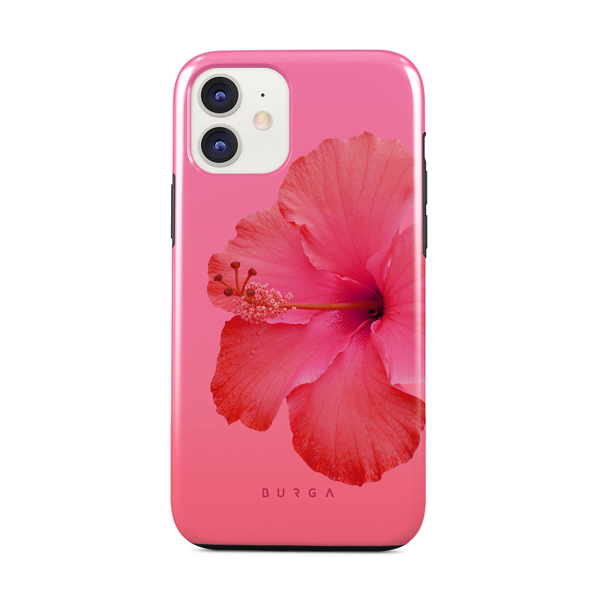 Our Island Girl iPhone 11 phone case design bursts with the fiery red of a hibiscus in full bloom against a dreamy pink backdrop. Perfect for those who embody the spirit of a sun-kissed island retreat.