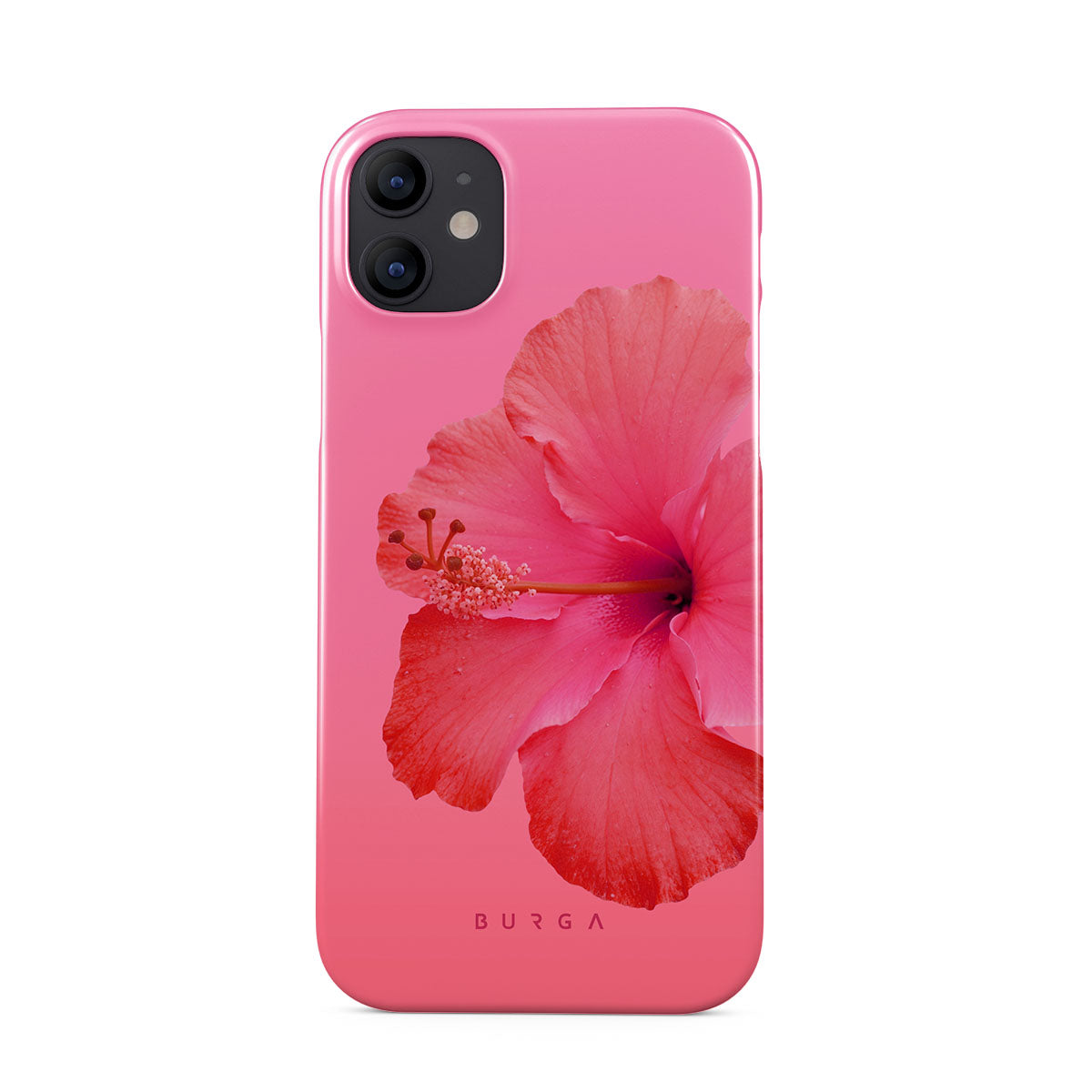 Our Island Girl iPhone 12 Mini phone case design bursts with the fiery red of a hibiscus in full bloom against a dreamy pink backdrop. Perfect for those who embody the spirit of a sun-kissed island retreat.