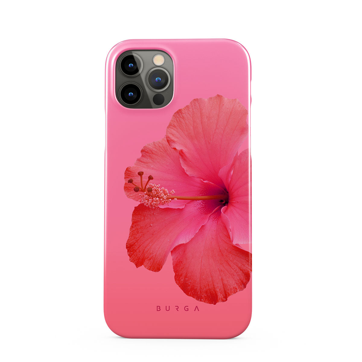 Our Island Girl iPhone 12 Pro Max phone case design bursts with the fiery red of a hibiscus in full bloom against a dreamy pink backdrop. Perfect for those who embody the spirit of a sun-kissed island retreat.