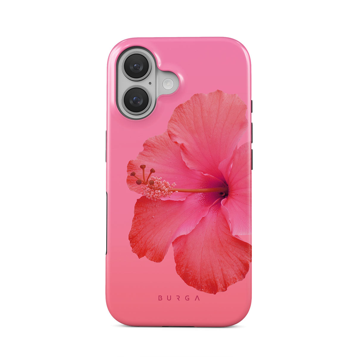 Our Island Girl iPhone 16 phone case design bursts with the fiery red of a hibiscus in full bloom against a dreamy pink backdrop. Perfect for those who embody the spirit of a sun-kissed island retreat.