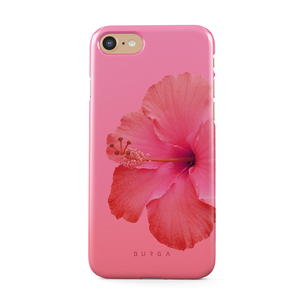 Our Island Girl iPhone 7 / iPhone 8 phone case design bursts with the fiery red of a hibiscus in full bloom against a dreamy pink backdrop. Perfect for those who embody the spirit of a sun-kissed island retreat.