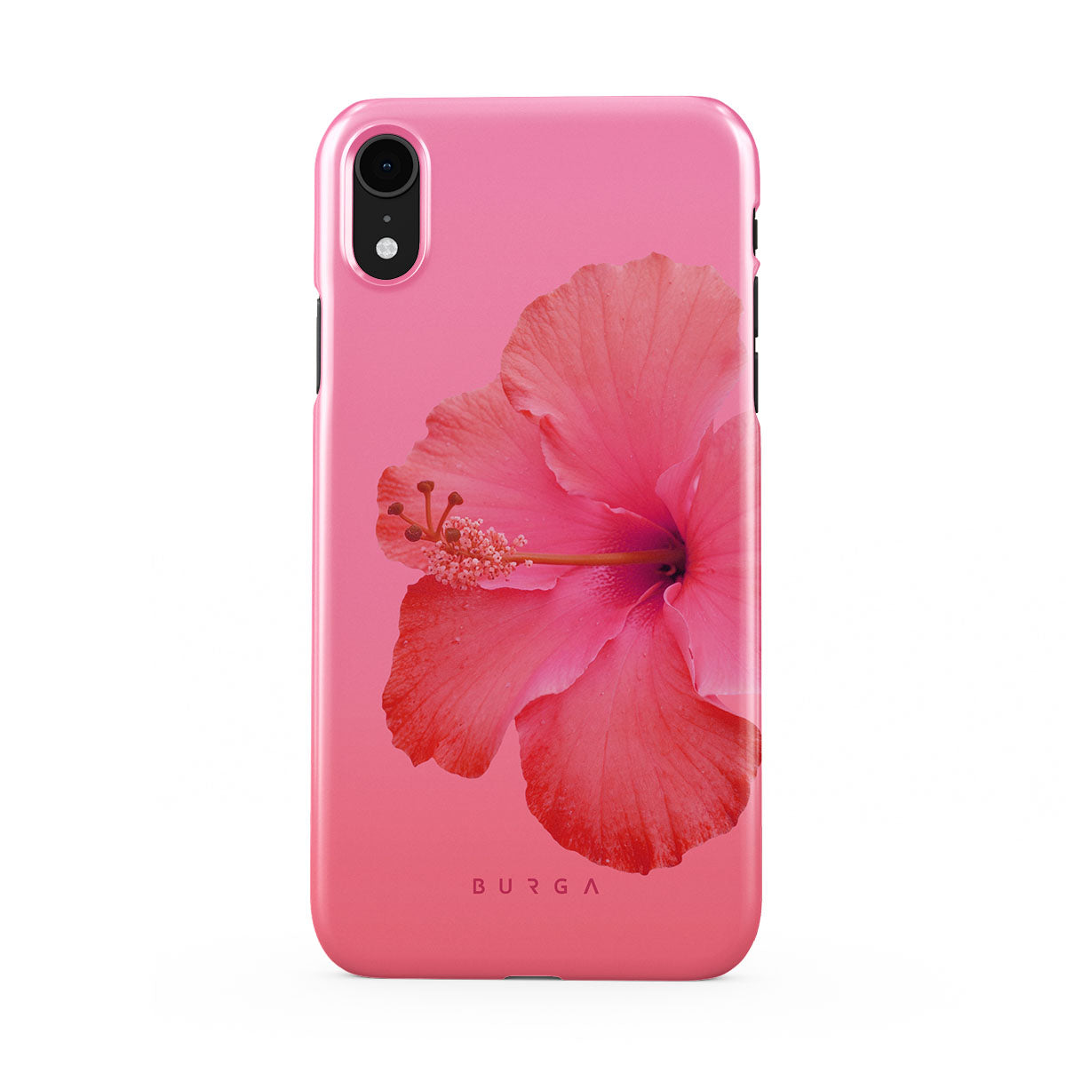 Our Island Girl iPhone XR phone case design bursts with the fiery red of a hibiscus in full bloom against a dreamy pink backdrop. Perfect for those who embody the spirit of a sun-kissed island retreat.