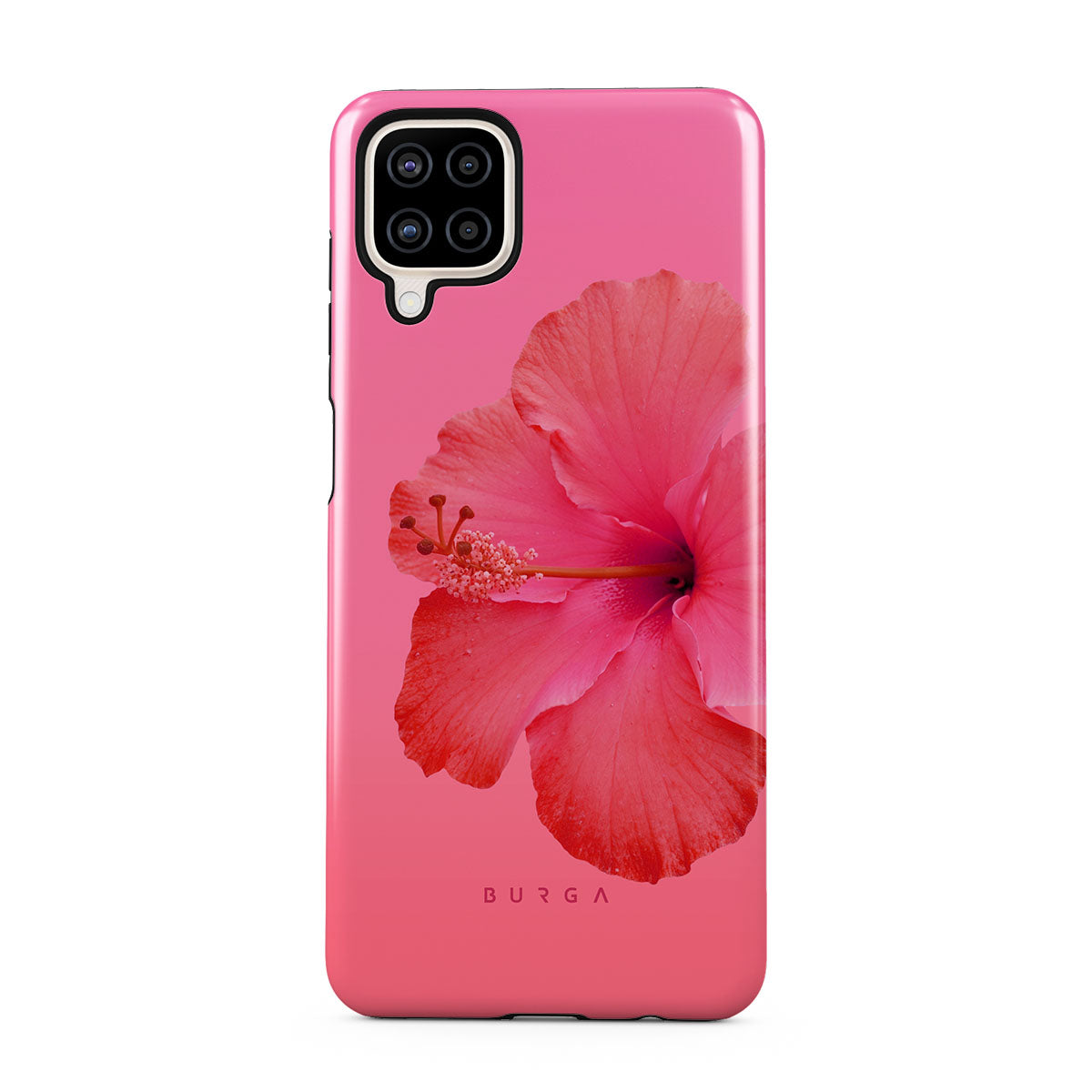 Our Island Girl Samsung Galaxy A12 4G phone case design bursts with the fiery red of a hibiscus in full bloom against a dreamy pink backdrop. Perfect for those who embody the spirit of a sun-kissed island retreat.