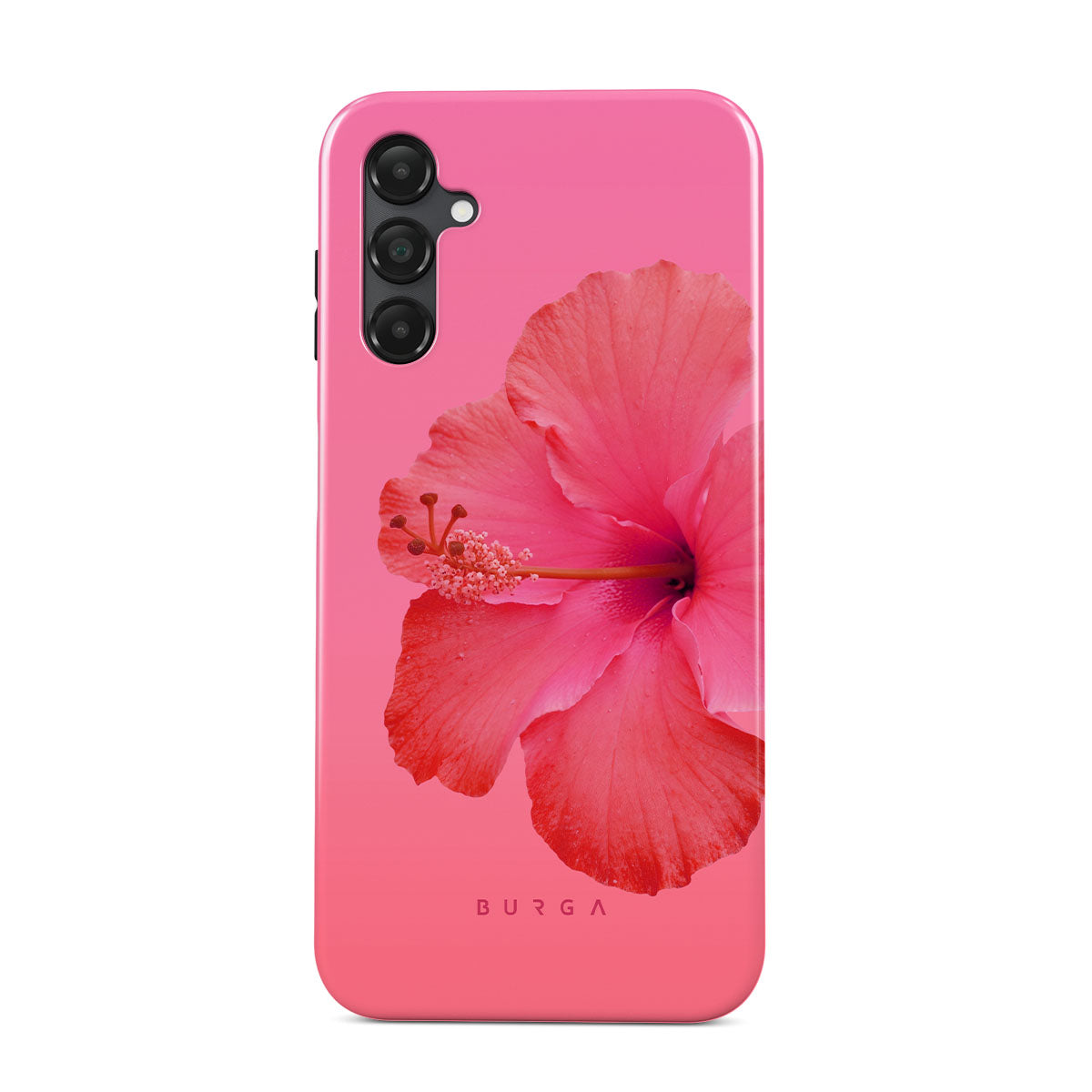 Our Island Girl Samsung Galaxy A25 phone case design bursts with the fiery red of a hibiscus in full bloom against a dreamy pink backdrop. Perfect for those who embody the spirit of a sun-kissed island retreat.