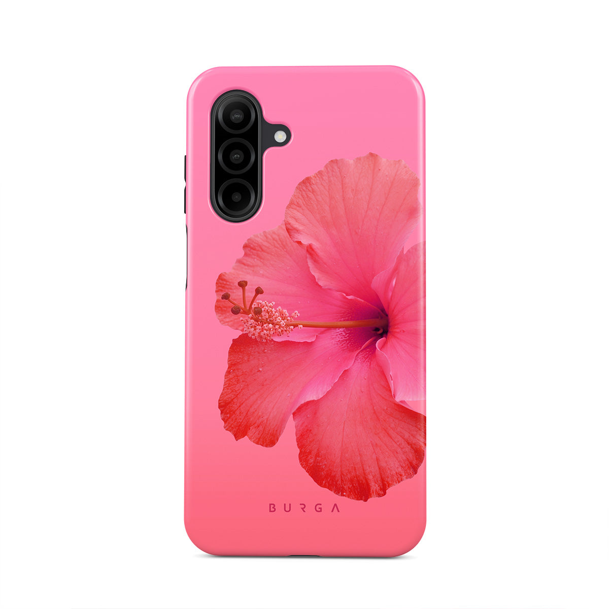 Our Island Girl Samsung Galaxy A26 5G phone case design bursts with the fiery red of a hibiscus in full bloom against a dreamy pink backdrop. Perfect for those who embody the spirit of a sun-kissed island retreat.