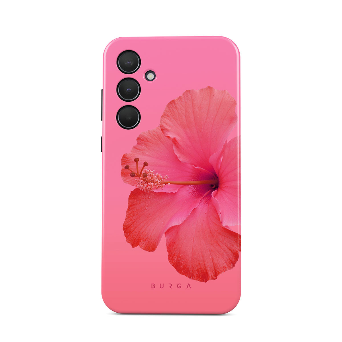Our Island Girl Samsung Galaxy A35 phone case design bursts with the fiery red of a hibiscus in full bloom against a dreamy pink backdrop. Perfect for those who embody the spirit of a sun-kissed island retreat.