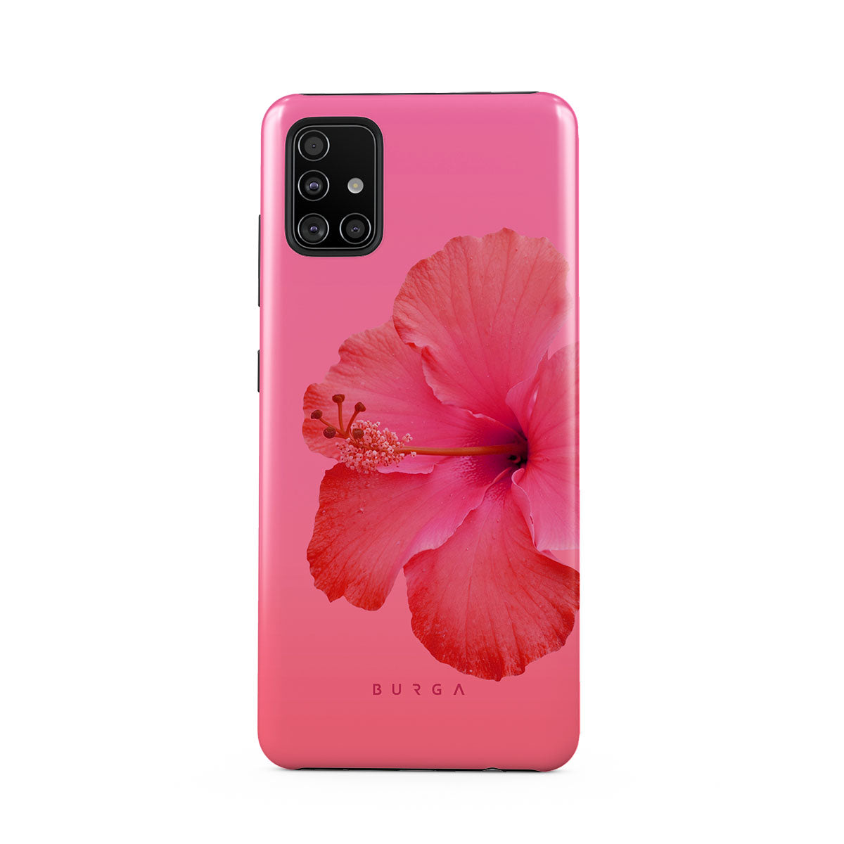 Our Island Girl Samsung Galaxy A71 4G phone case design bursts with the fiery red of a hibiscus in full bloom against a dreamy pink backdrop. Perfect for those who embody the spirit of a sun-kissed island retreat.