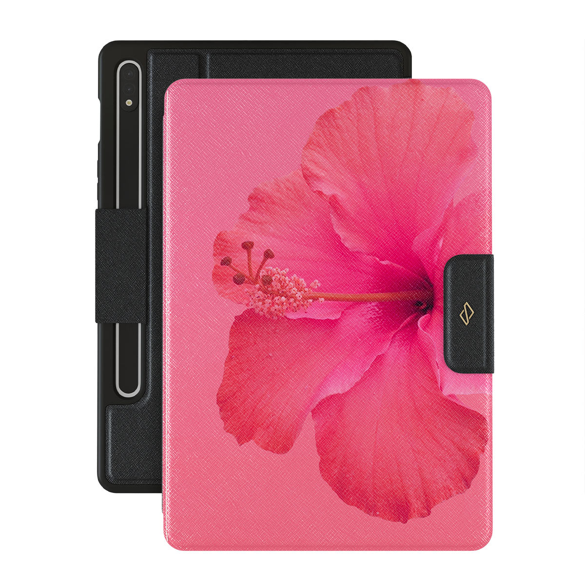 Our Island Girl Samsung Galaxy Tab S9 folio case design bursts with the fiery red of a hibiscus in full bloom against a dreamy pink backdrop. Perfect for those who embody the spirit of a sun-kissed island retreat.
