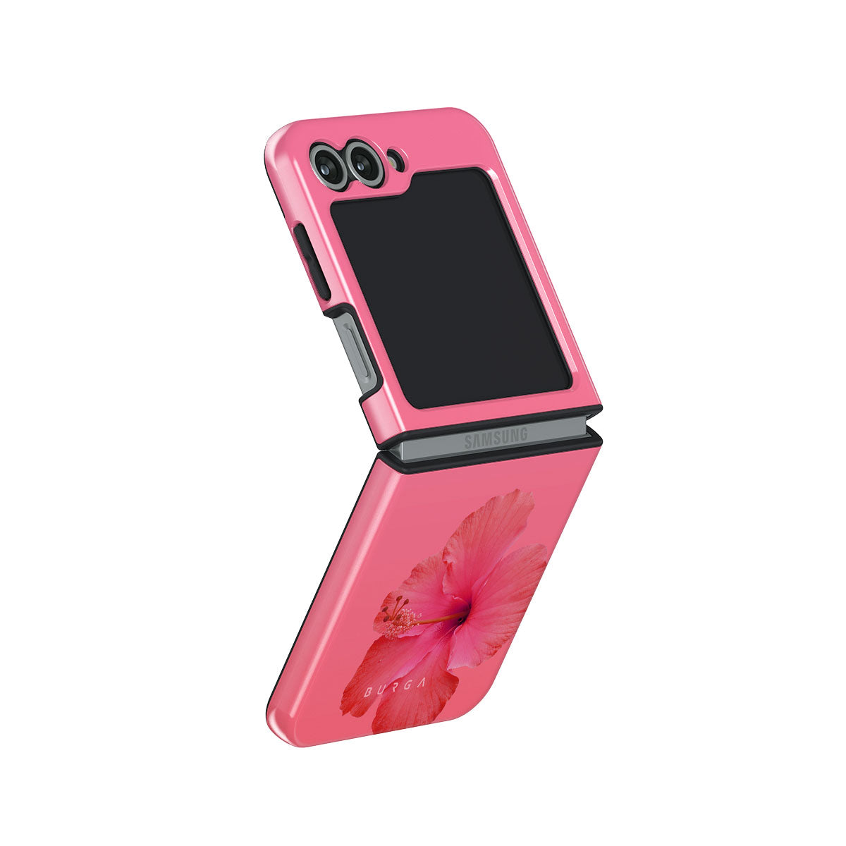 Our Island Girl Samsung Galaxy Z Flip 6 phone case design bursts with the fiery red of a hibiscus in full bloom against a dreamy pink backdrop. Perfect for those who embody the spirit of a sun-kissed island retreat.